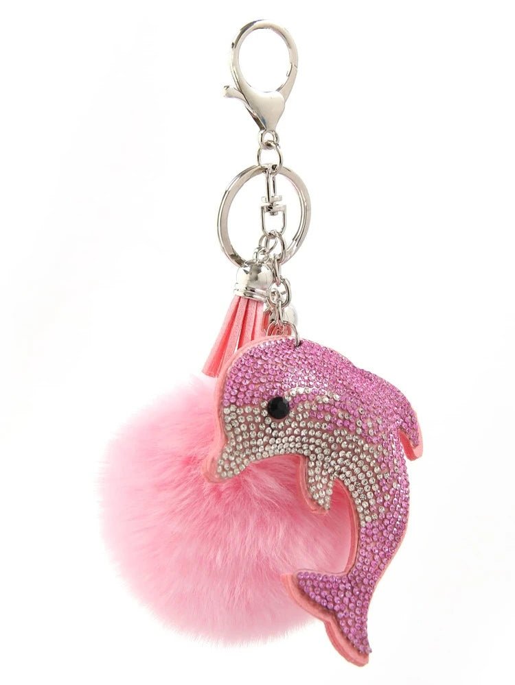 Diamanté Dolphin Pompom Bag Charm / Keyring