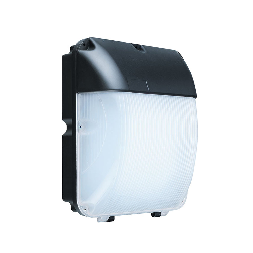 Commonly used on building exteriors for security lighting, the Kensington wallpack is IP65 rated for commercial outdoor use. Die cast aluminium base and polycarbonate cover.