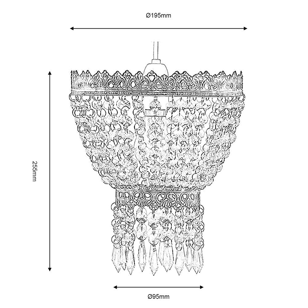 Featuring stunning glass beads and scrolled metalwork, this shade adds an elegant touch to any pendant light. Available in antique brass or satin nickel, it fits most pendants with the supplied hole and adaptor.