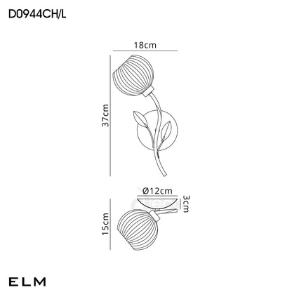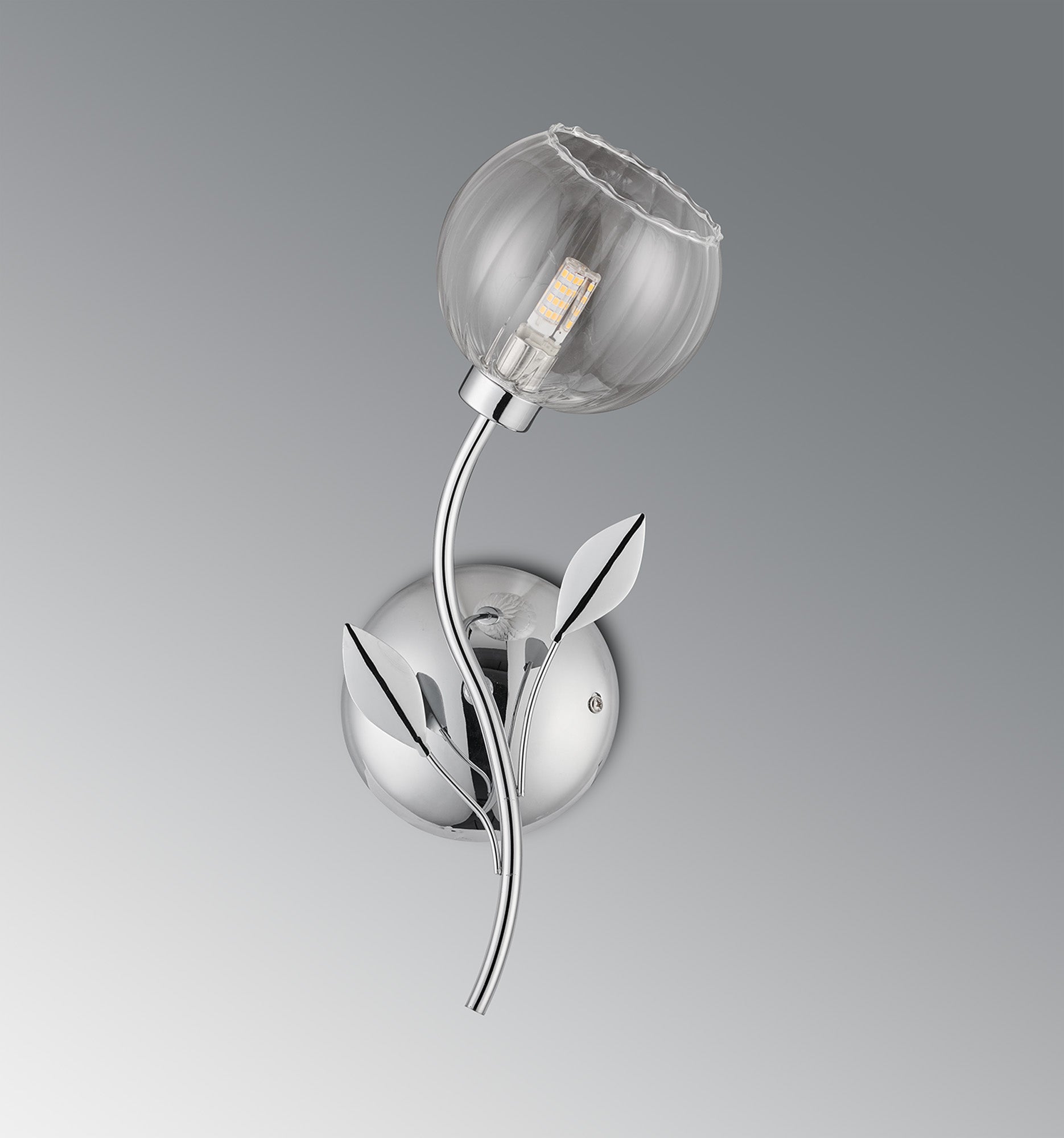 Elm Single Wall Light With Leaf Styled Stems and Ridged Style Clear Glass Shades