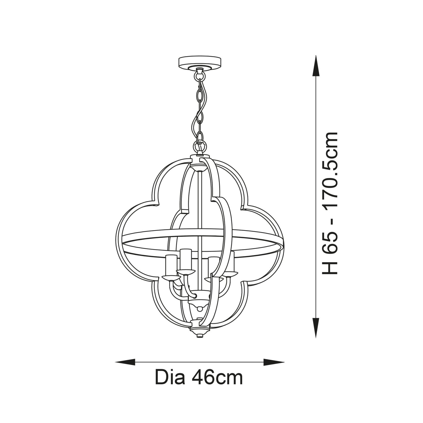 - Height adjustable chain with 1.2 metre clear cable