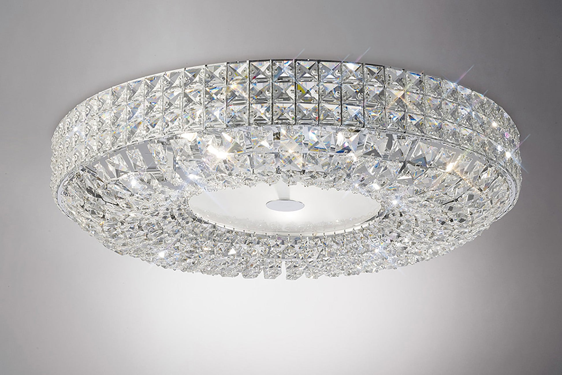 The focal point of this collection has to be the vast amount of square Asfour crystals that make this flush light fitting truly unique creating an immense sparkle of lighting array.