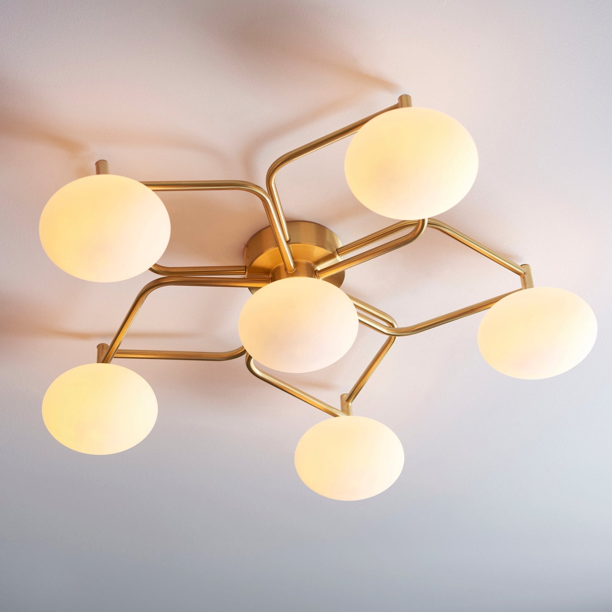 The opal glass accents give this statement piece a unique finishing touch, making it a great addition to even the lowest of ceilings.