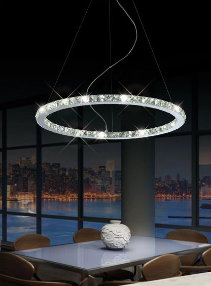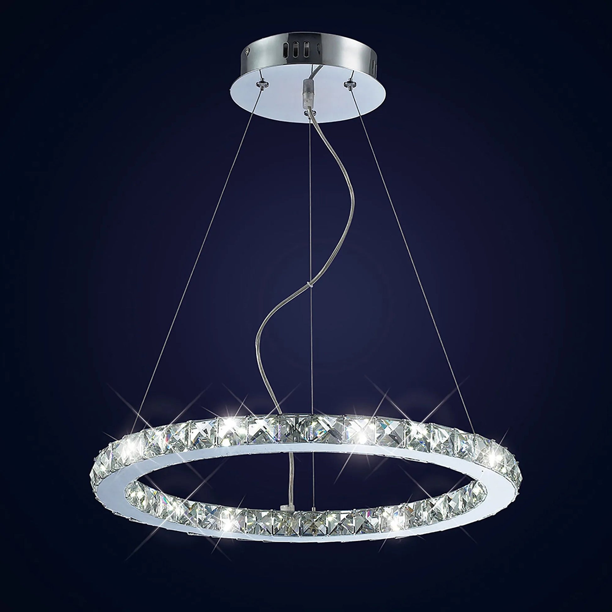 Galaxy Crystal Pendant Ring, Small, 27W LED, 6000K Polished Chrome/Crystal (Diyas IL70036)