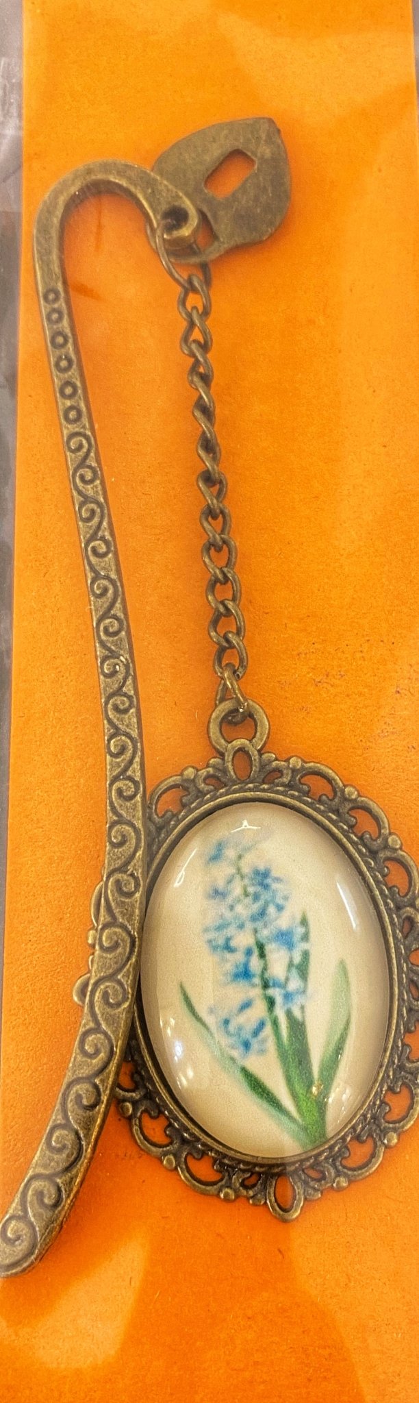 A handmade bookmark in antique brass with a vintage style Flower picture detail.