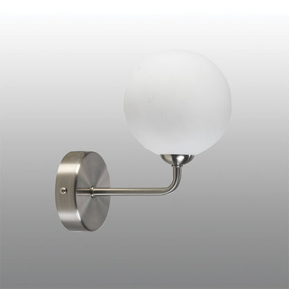 Flaxton Satin Nickel Curved Stem Single Wall Light with Opal Glass