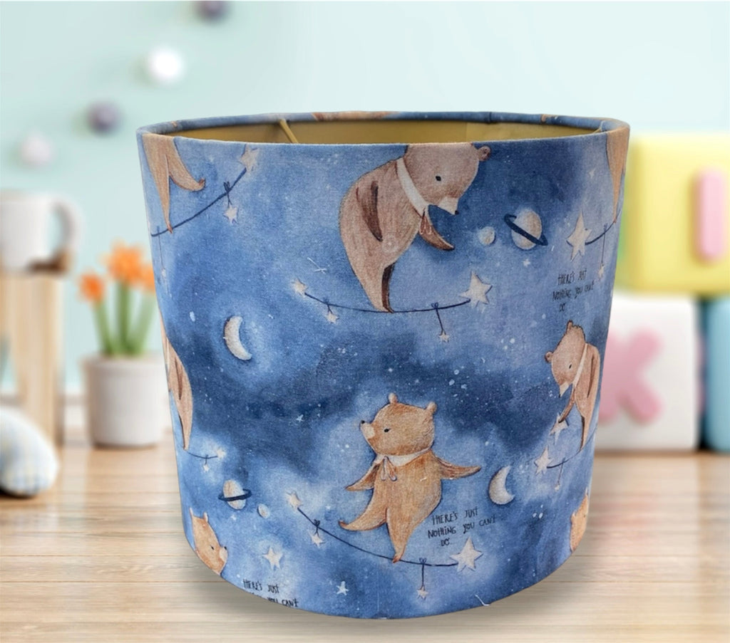 Hand Crafted Ceiling Drum Lampshade - Starry Night Bears