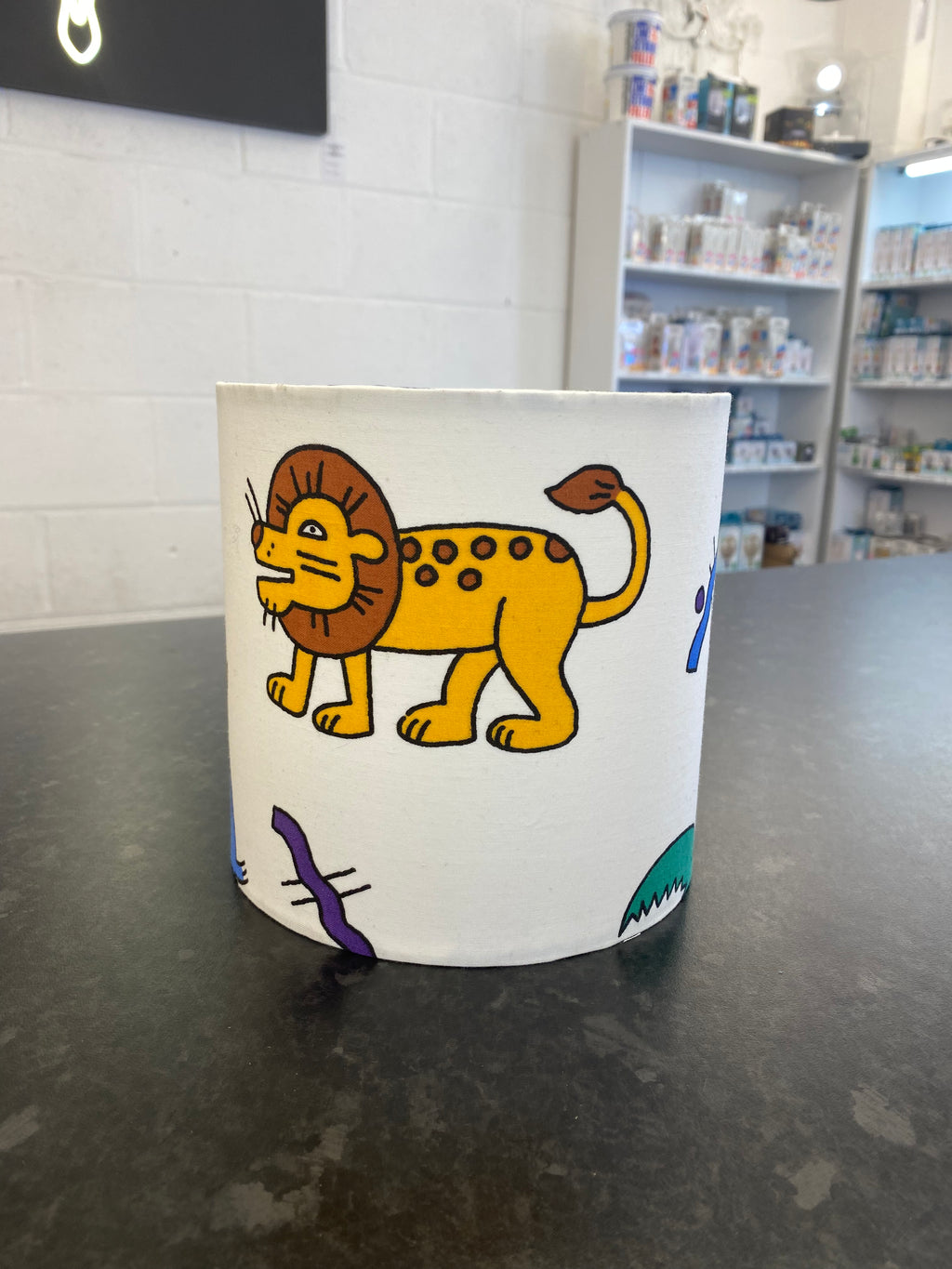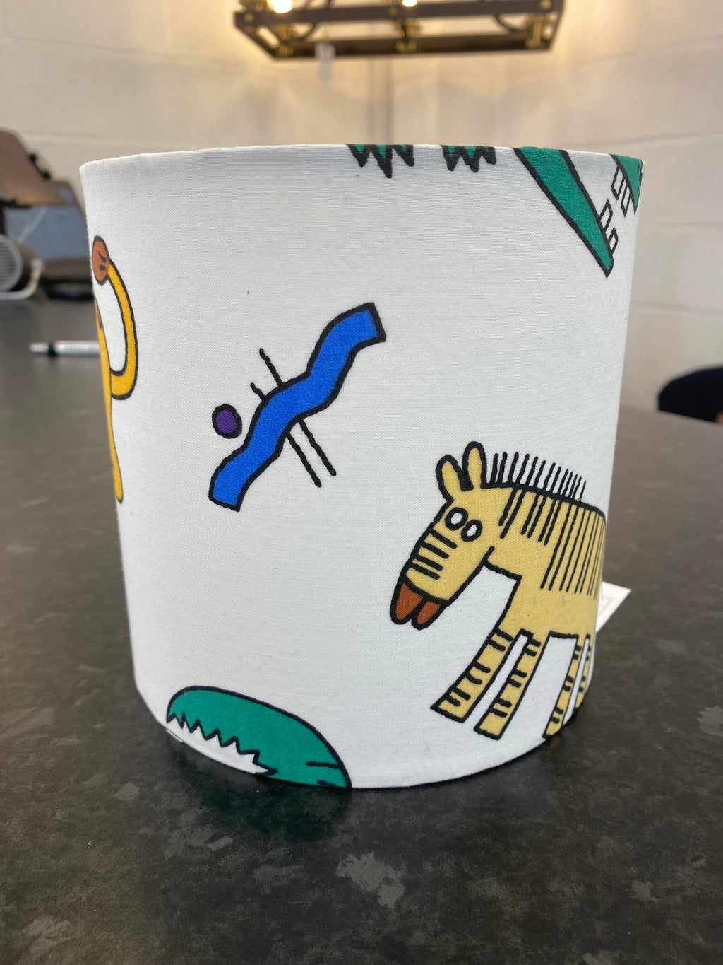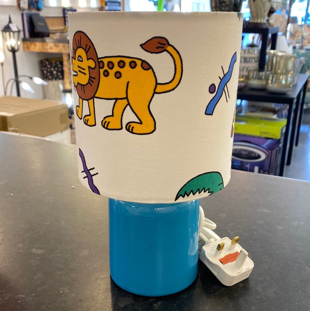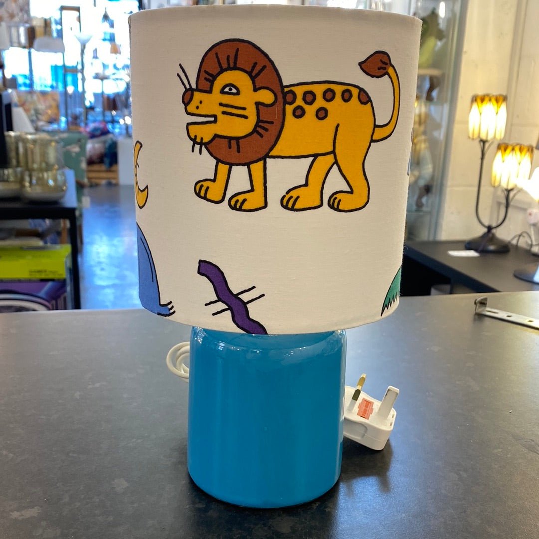 Vintage Table Lamp with Hand Crafted Drum Table Lampshade - Retro Zoo