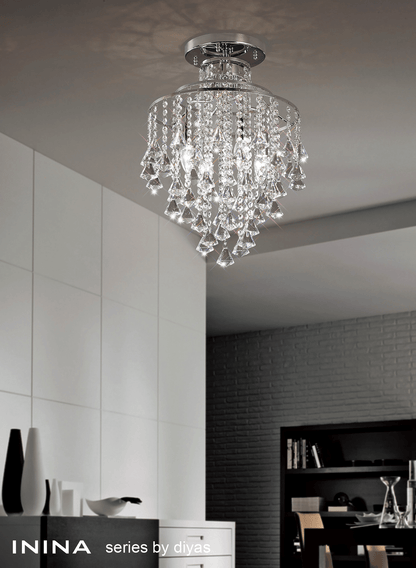 Inina Semi-Flush Pendant 4 Light E14 Polished Chrome/Crystal