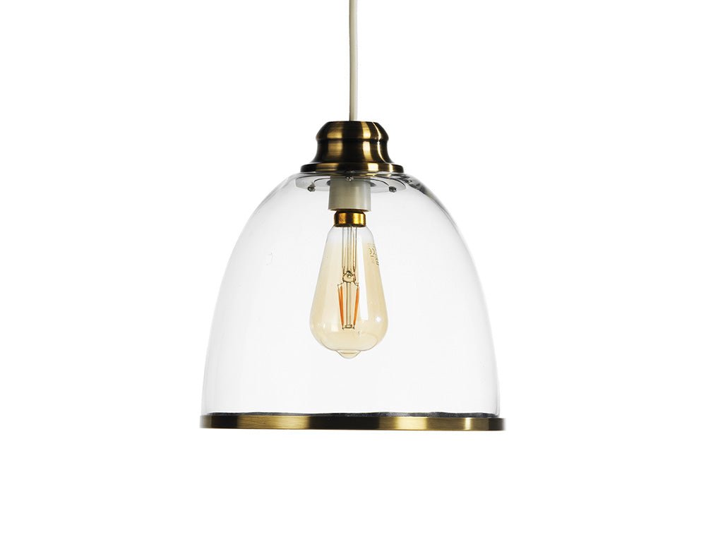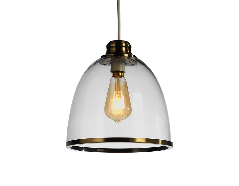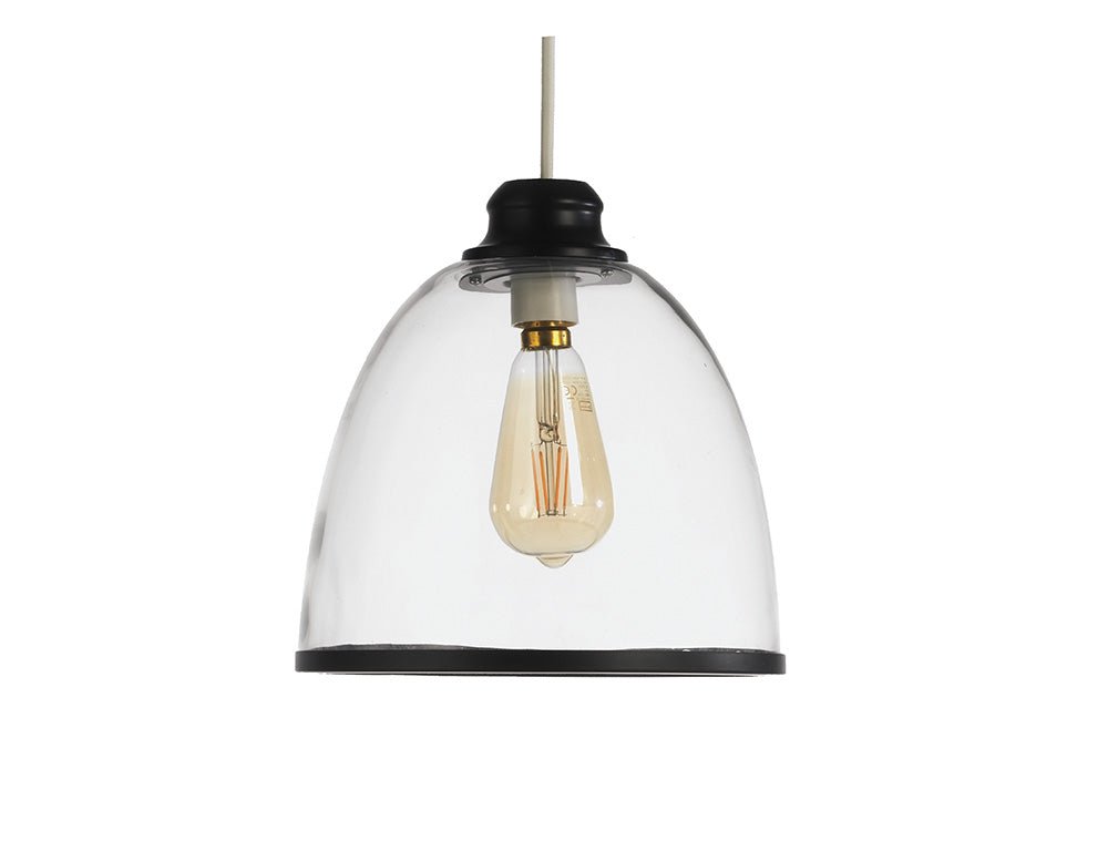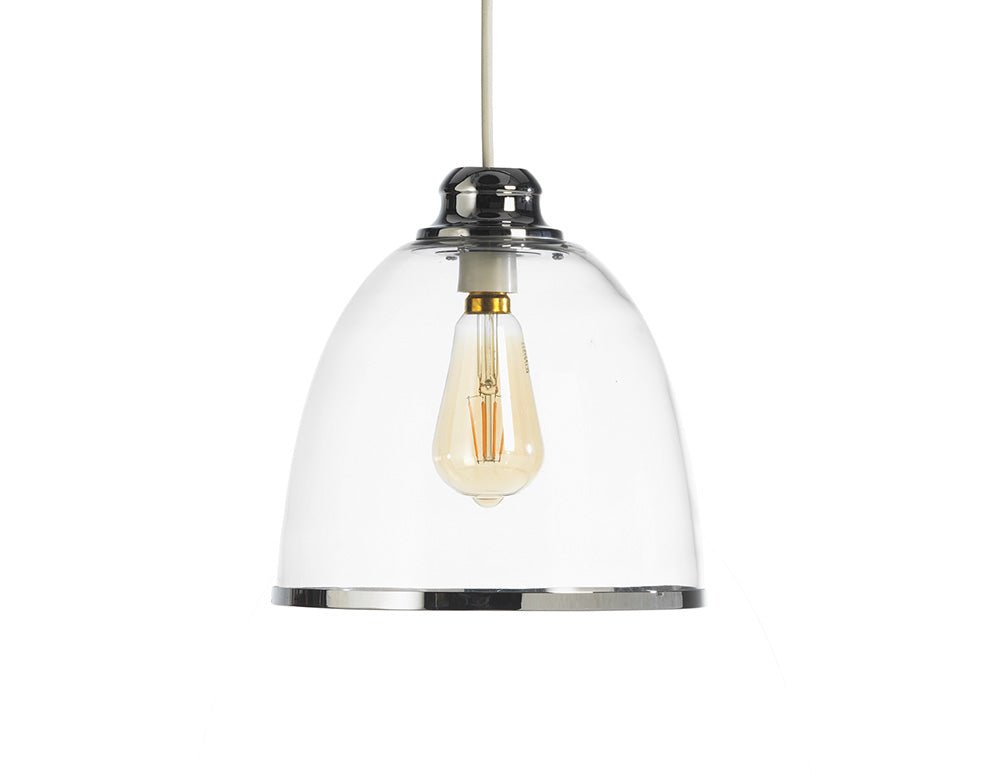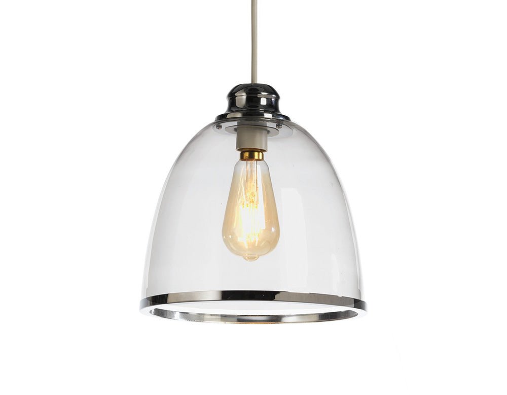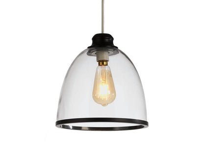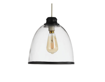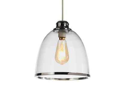 This Kasama Glass Pendant Shade offers a sleek and modern look with its clear glass and metal trim.