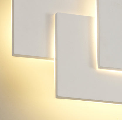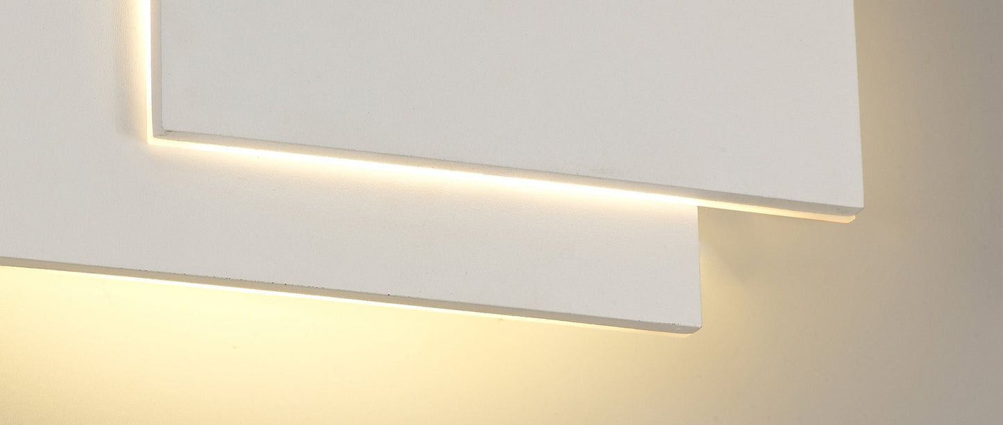 The use of three offset layered shapes creates a compellingly attractive design feature within this range. With the integral 3000K LEDs back lighting the sand white forms, the fixture emits a soft halo of light around each individual rectangle or oval piece. The Kiania wall lights would provide a key feature to any room setting not only offering visual interest but highly functional