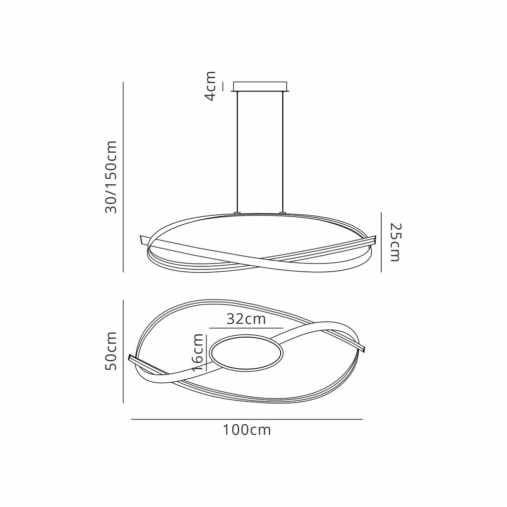 Knot Loop Pendant, 1 x 3W LED, Triac Dimmable, 3000K, 2400lm