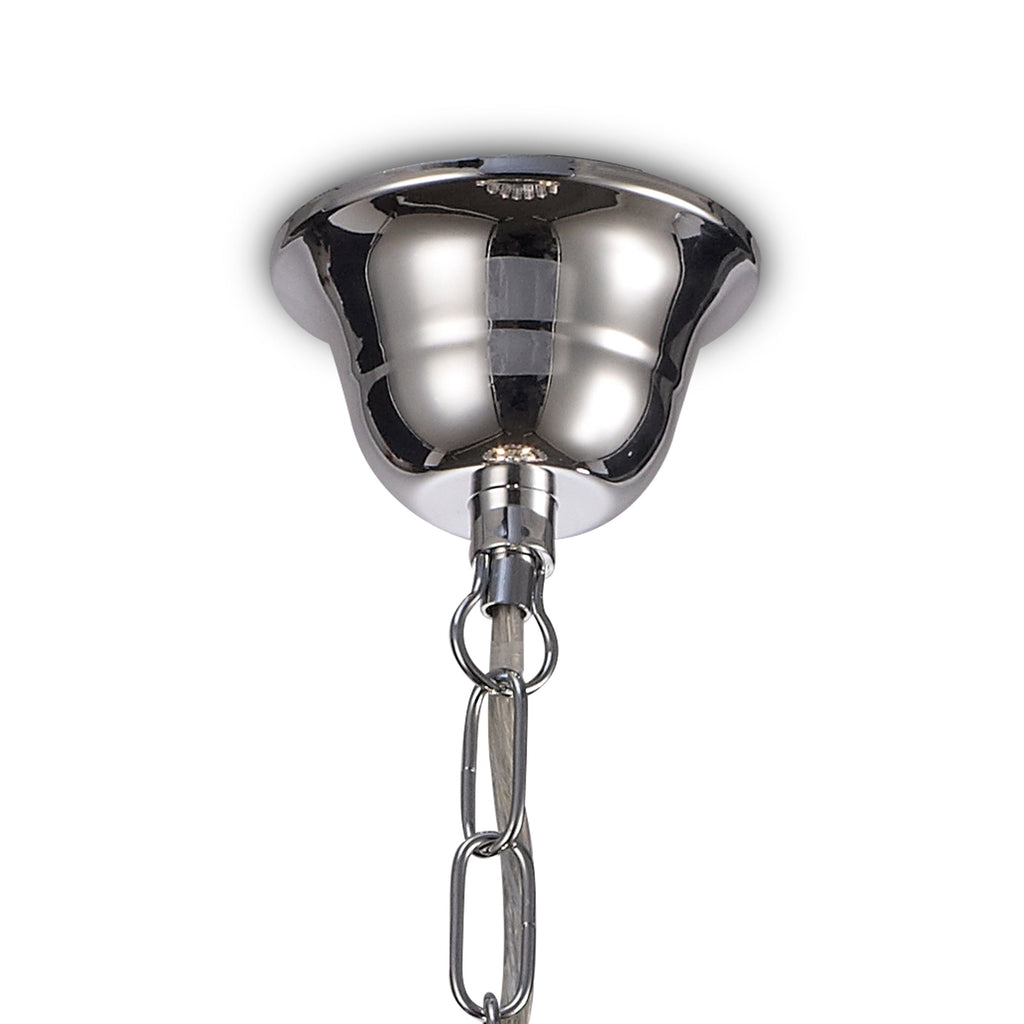 The classic polished chrome ceiling cup and chain suspend the E14 lampholders.