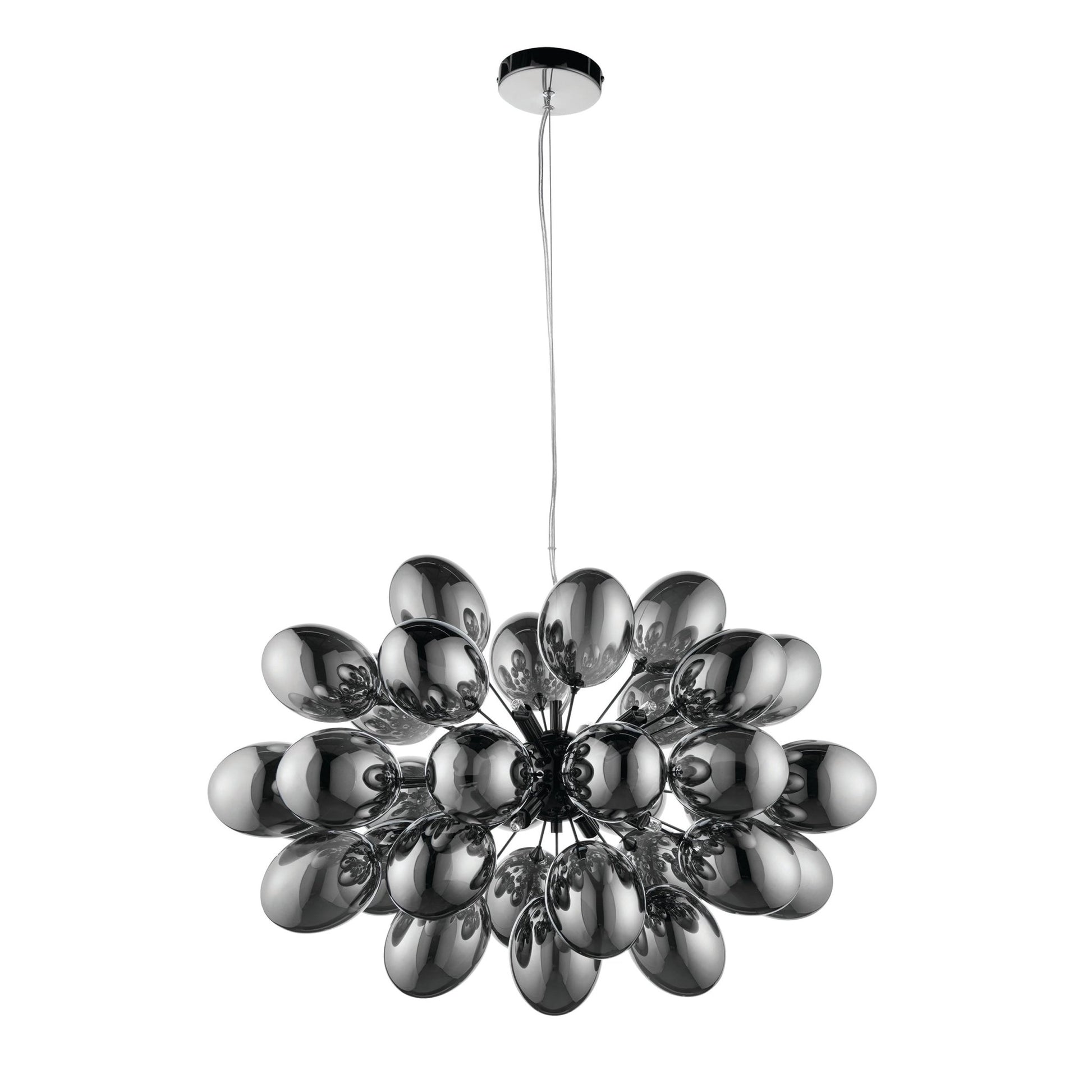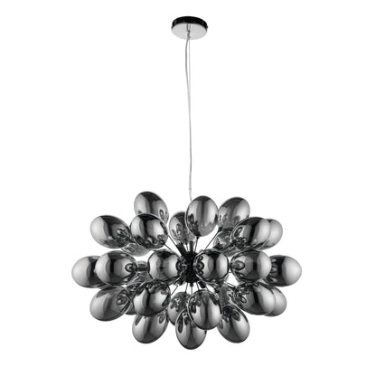 Equally as stunning as the chrome Infinity, is the dramatic black chrome Infinity pendant. Electro-plated dark chrome glass shades and black chrome plated finish combine to achieve a complete sophisticated designer look.