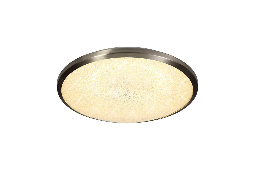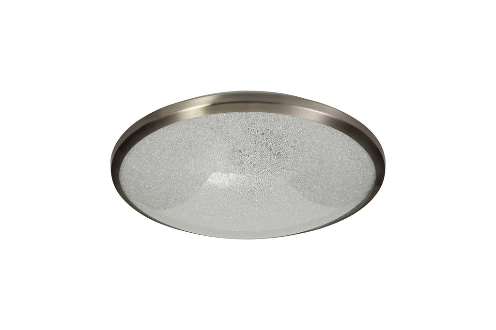 Its crystalised glass conceals a built in led panel all mounted in a brushed chrome ring.