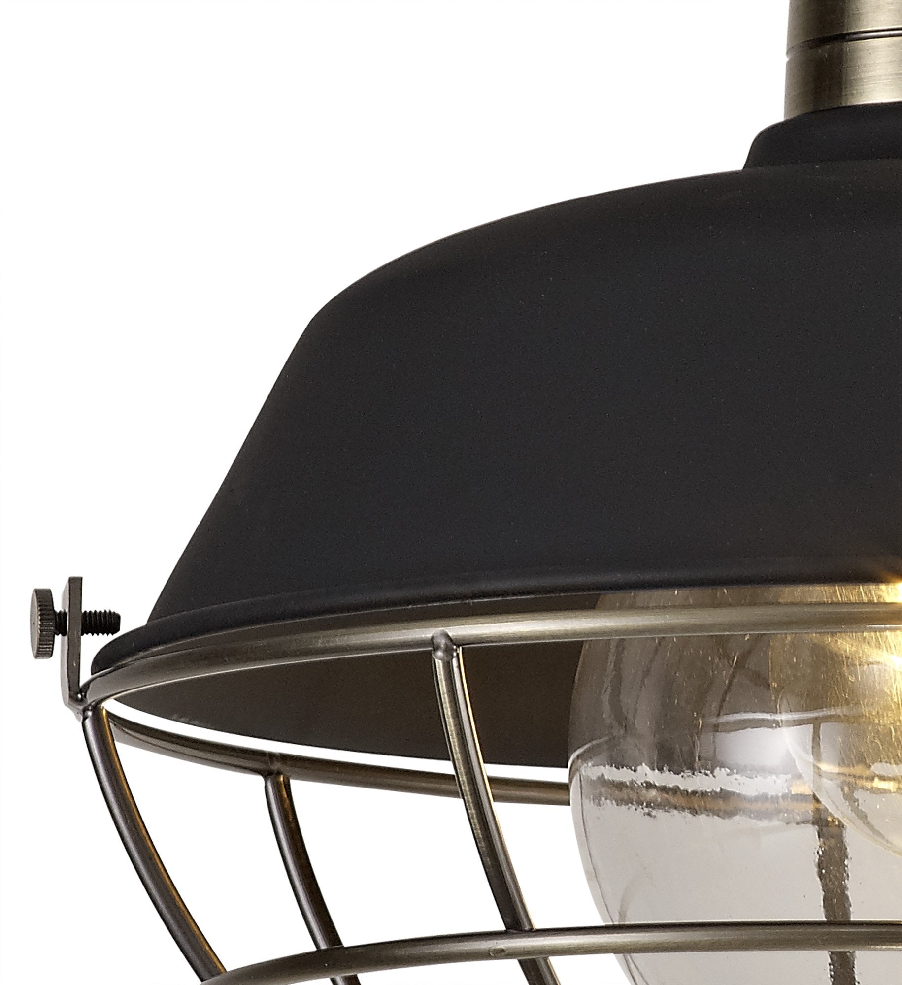 The Locomotive Collection is a hexagonal based industrial antique style cage paired with a matt black shade.