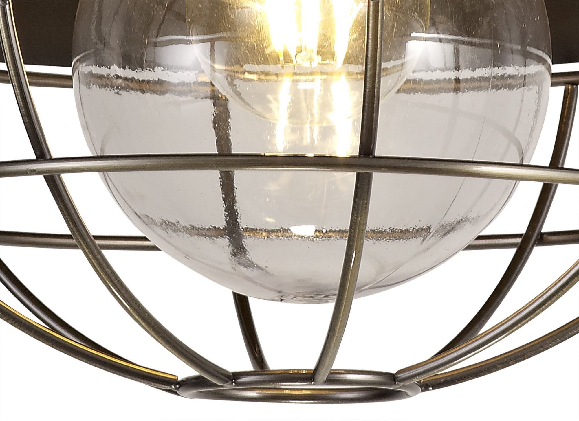A black and gold steampunk look deviates away from the usual steel colours and the addition of the glass globe cover gives this a IP65 rating making it suitable for outdoors and bathrooms.