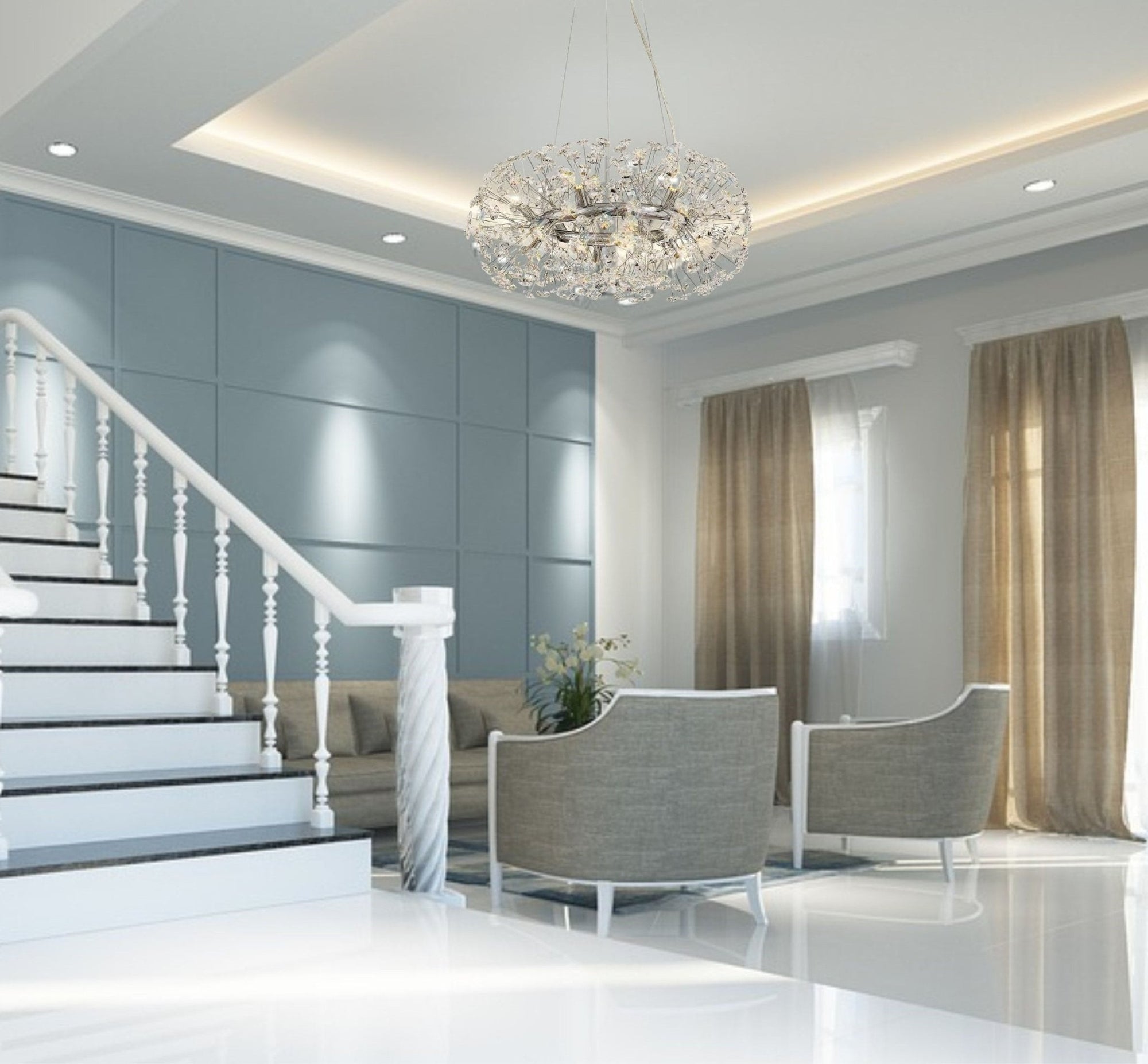 The Opulance pendant is a modern take on the traditional crystal chandelier. The fitting comprises of Swarovski quality lead K9 cystrals encompasing a central ring of lights giving a truly angelic glow.