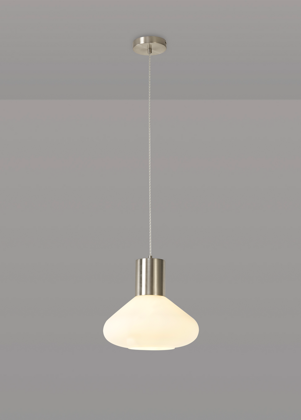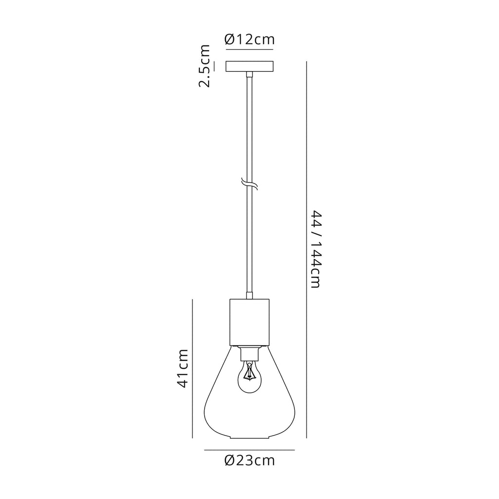 ItsĀ  fittings hold an E27 bulb covered in a liquid looking formed glass shade.