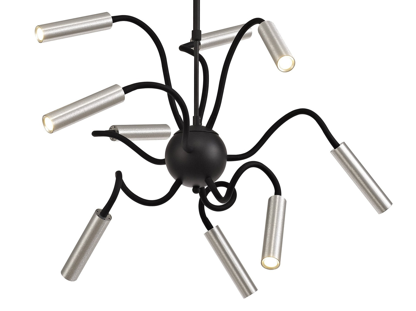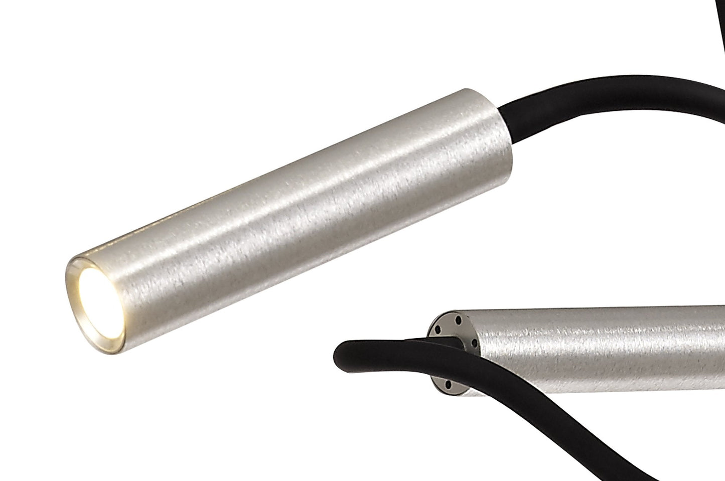 Its flexible arms are bendable and twistable and each carries a cylindrical led light mounted in a brushed metal tube.
