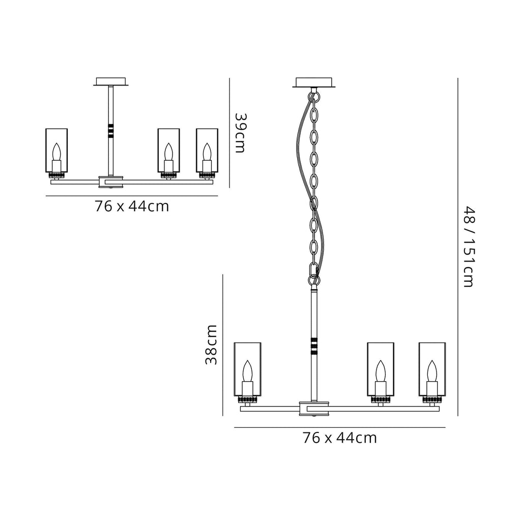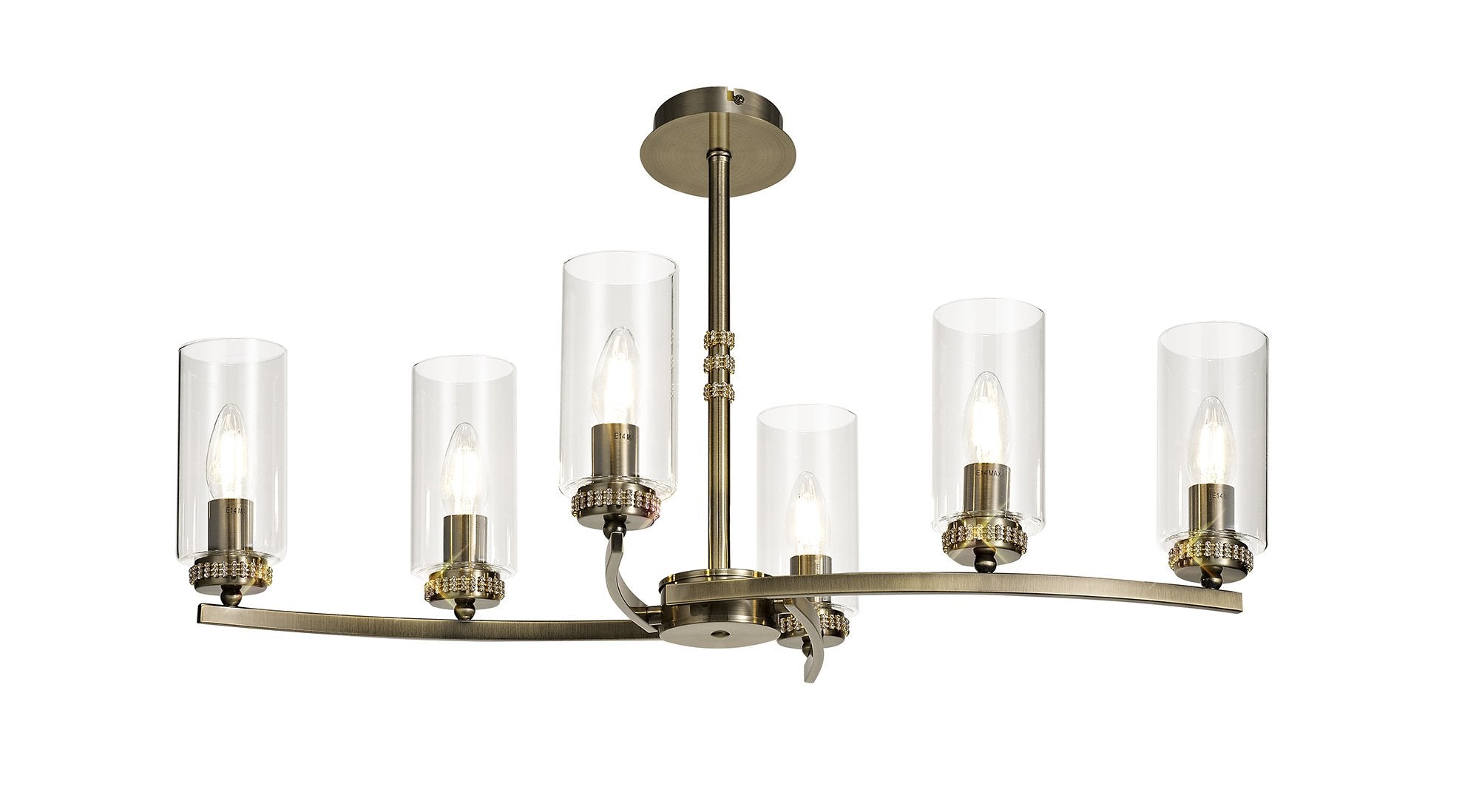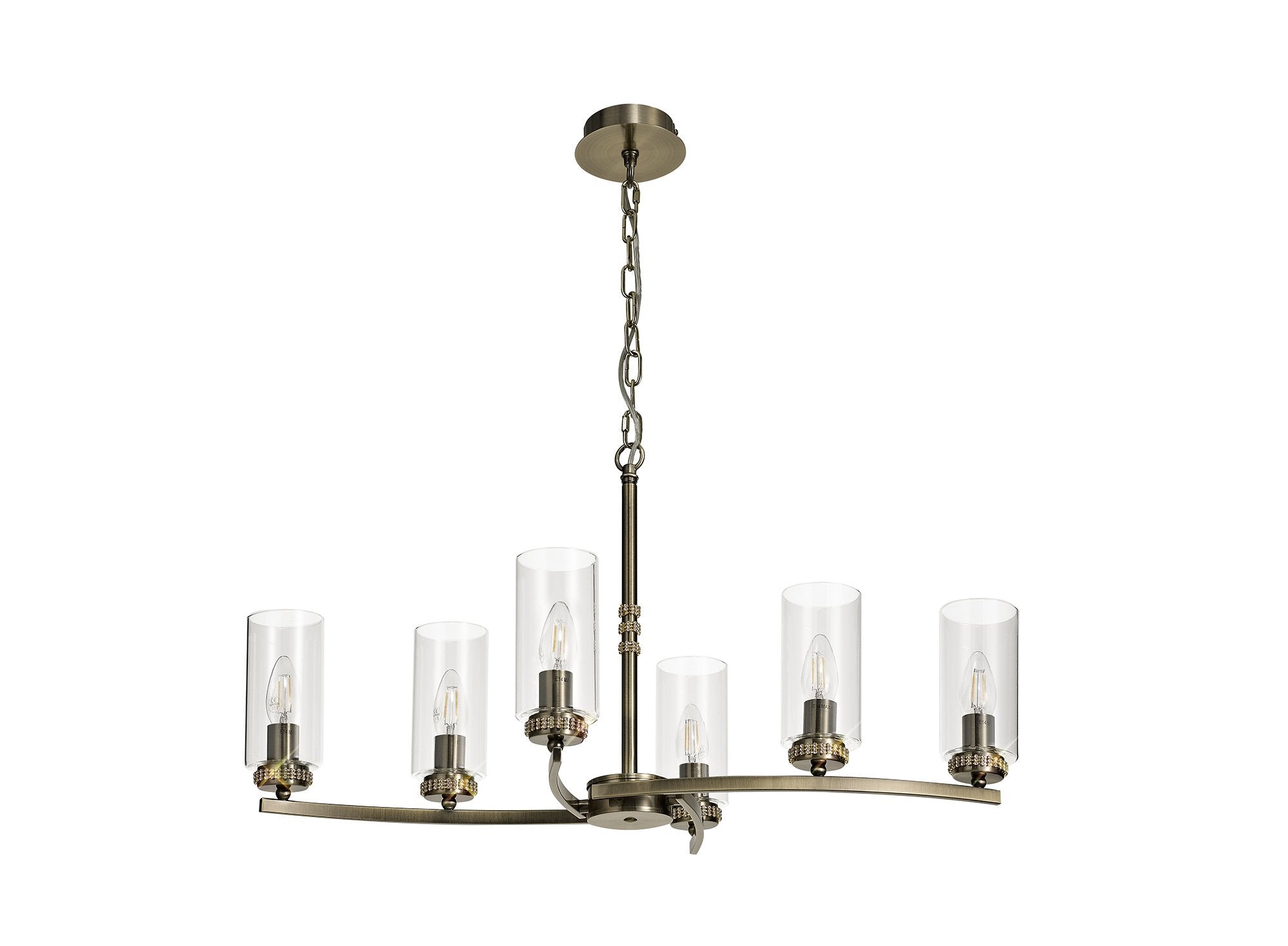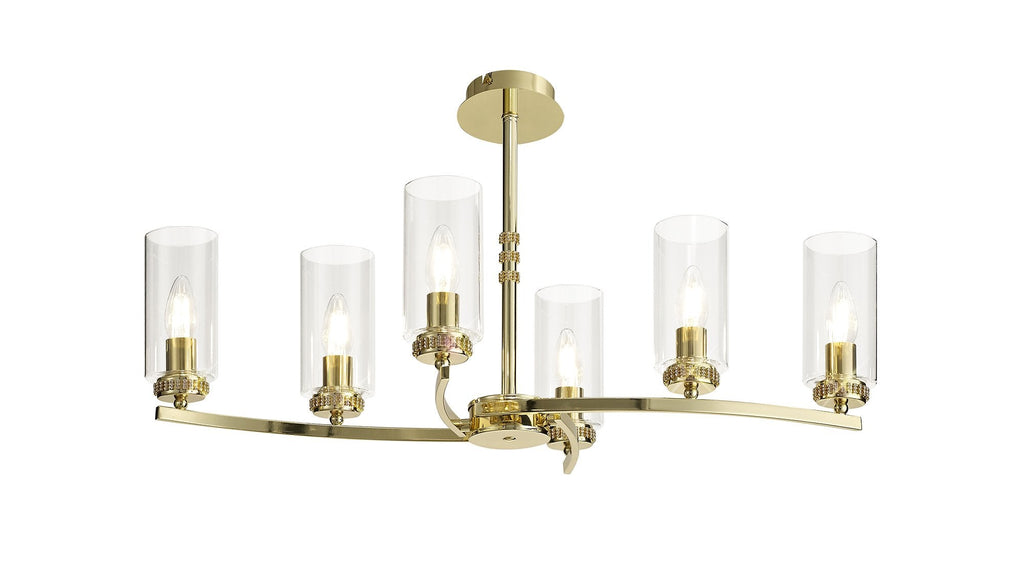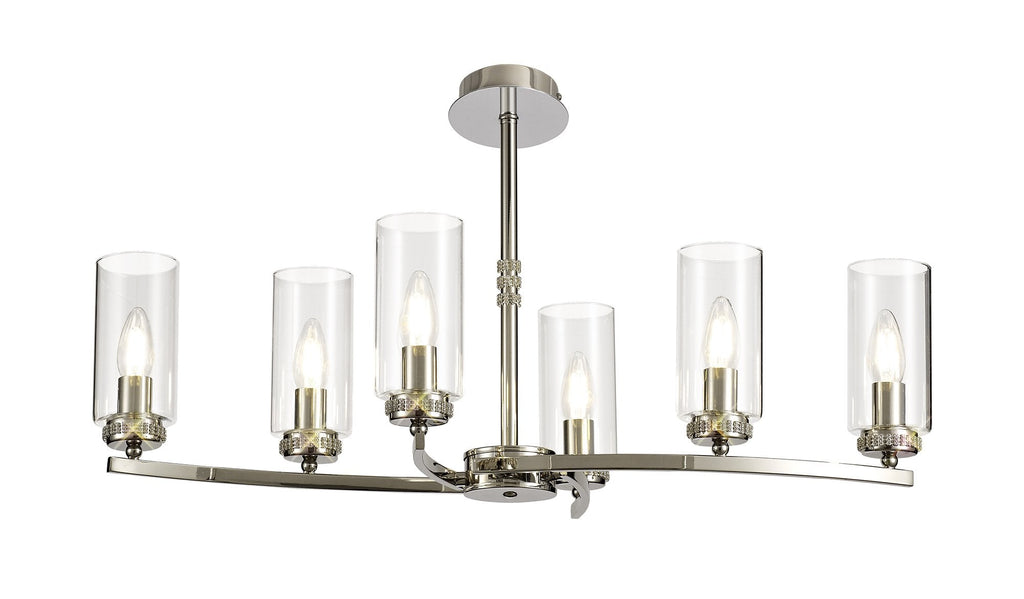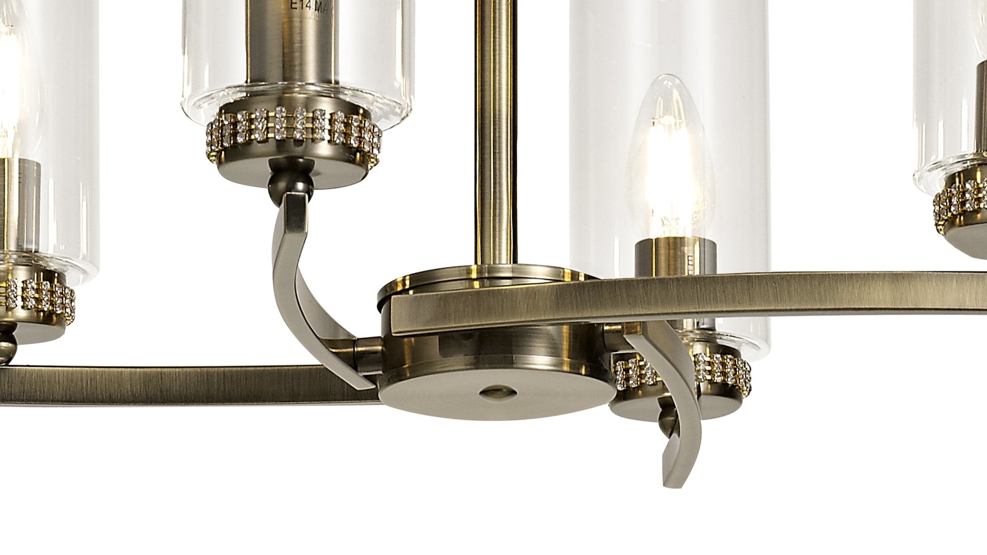 Barbara Adjustable Chandelier 6 Light With E14 Lamp holders and Glass Shades, Crystal Detail