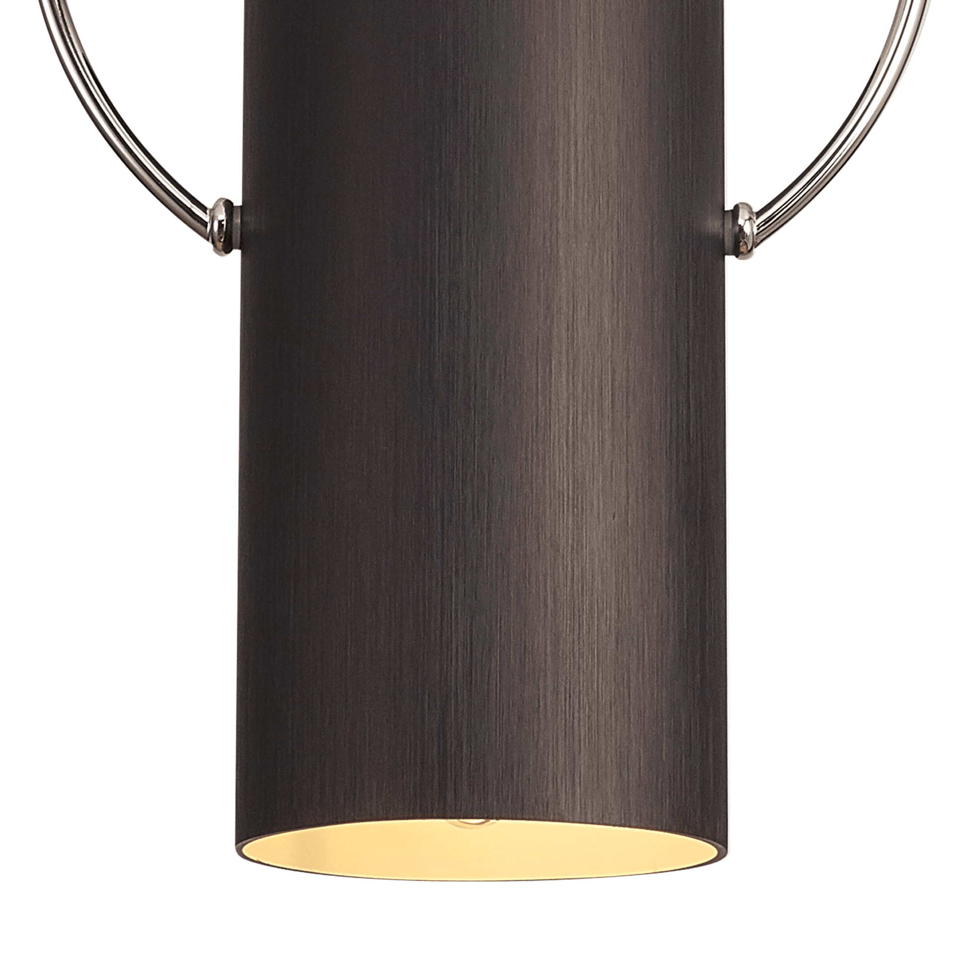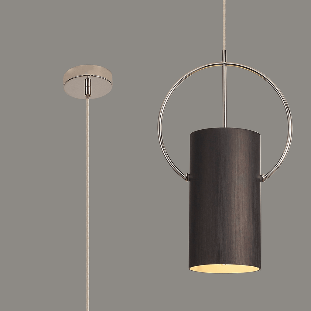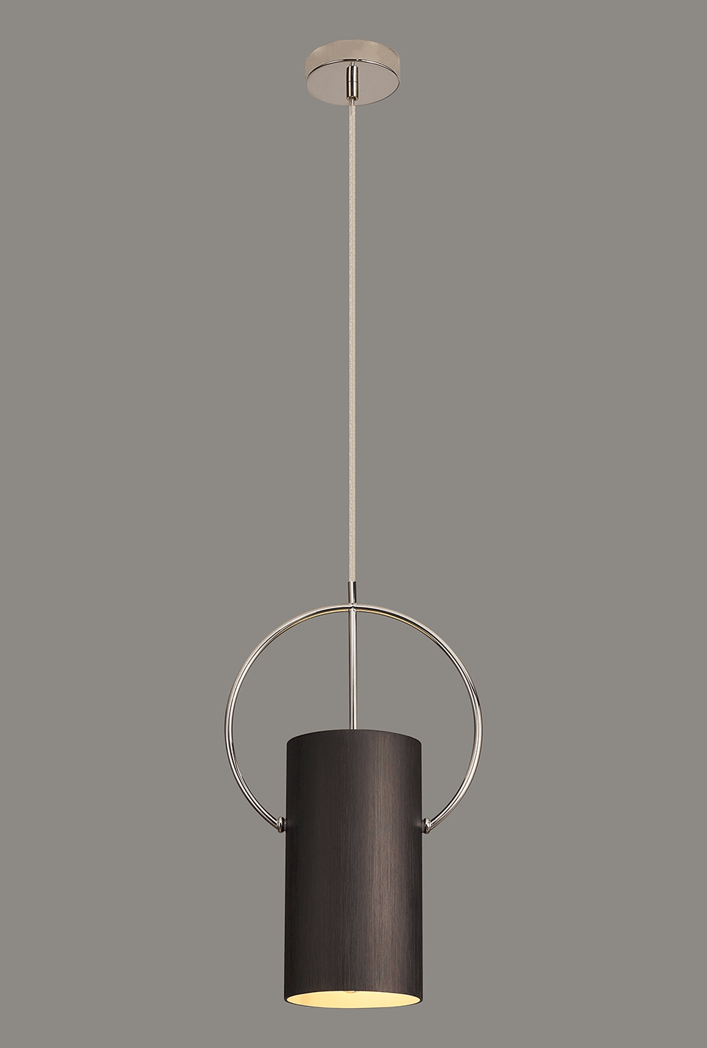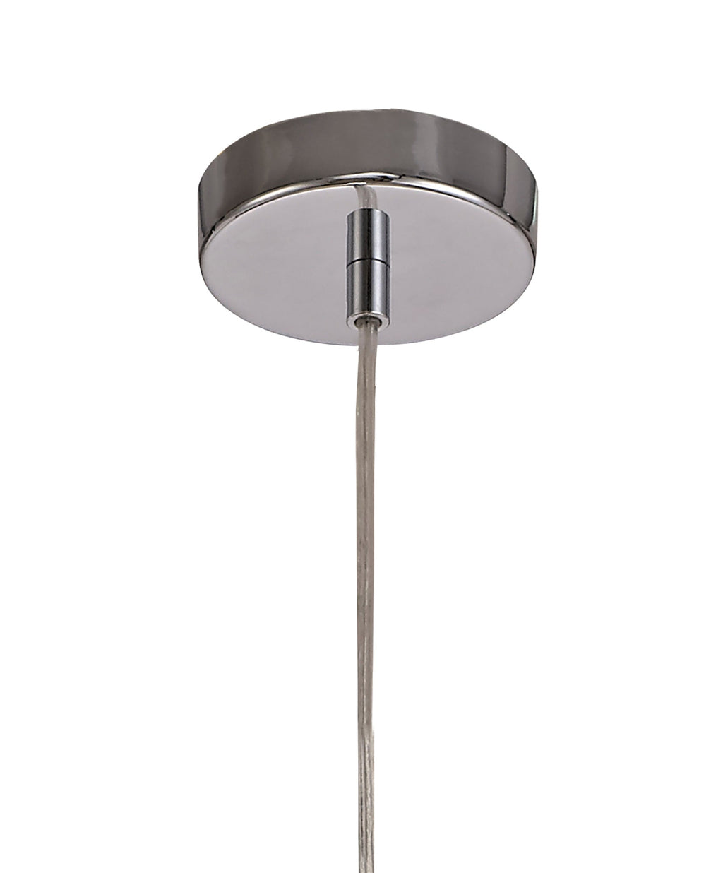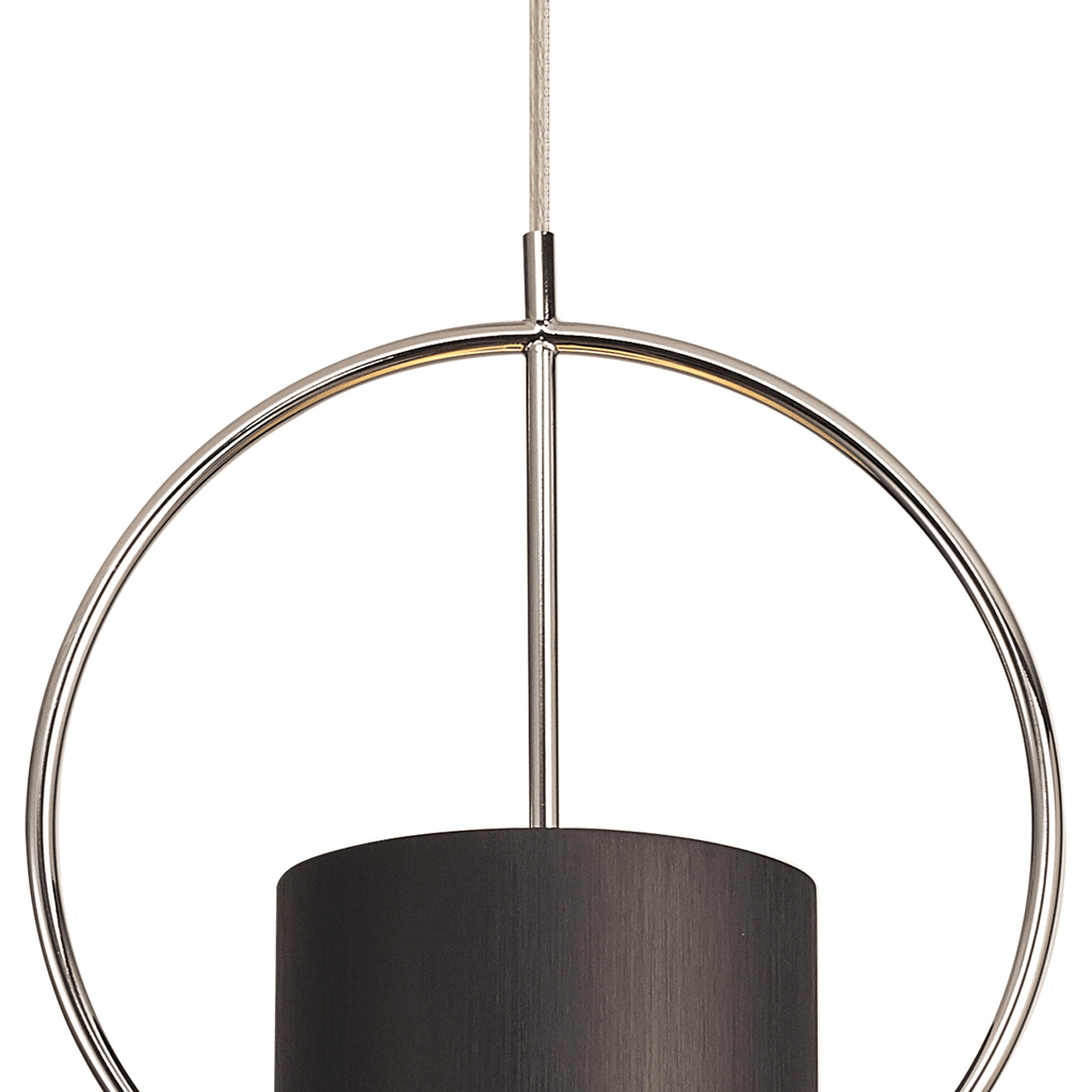 The polished chrome ring featured on the single pendants creates a halo effect above the top of the narrow cylindrical shade which is stylish when the light is not in use yet projects the light from the E27 lamp holder when illuminated.