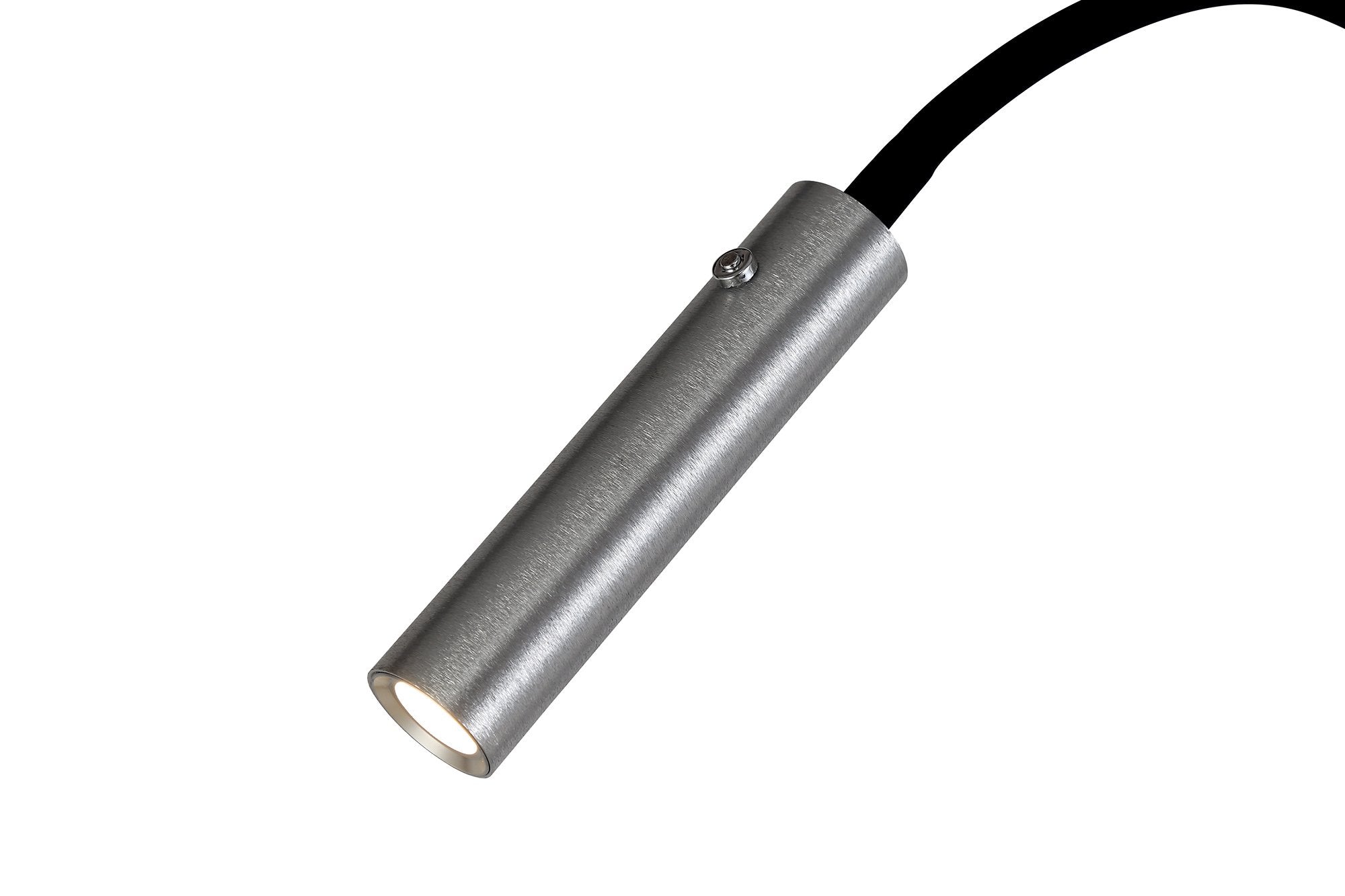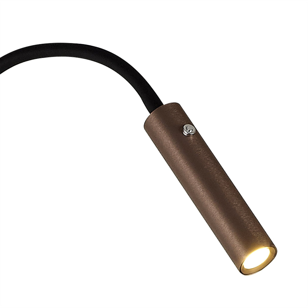 Its flexible arms are bendable and twistable and each carries a cylindrical led light mounted in a brushed metal tube.