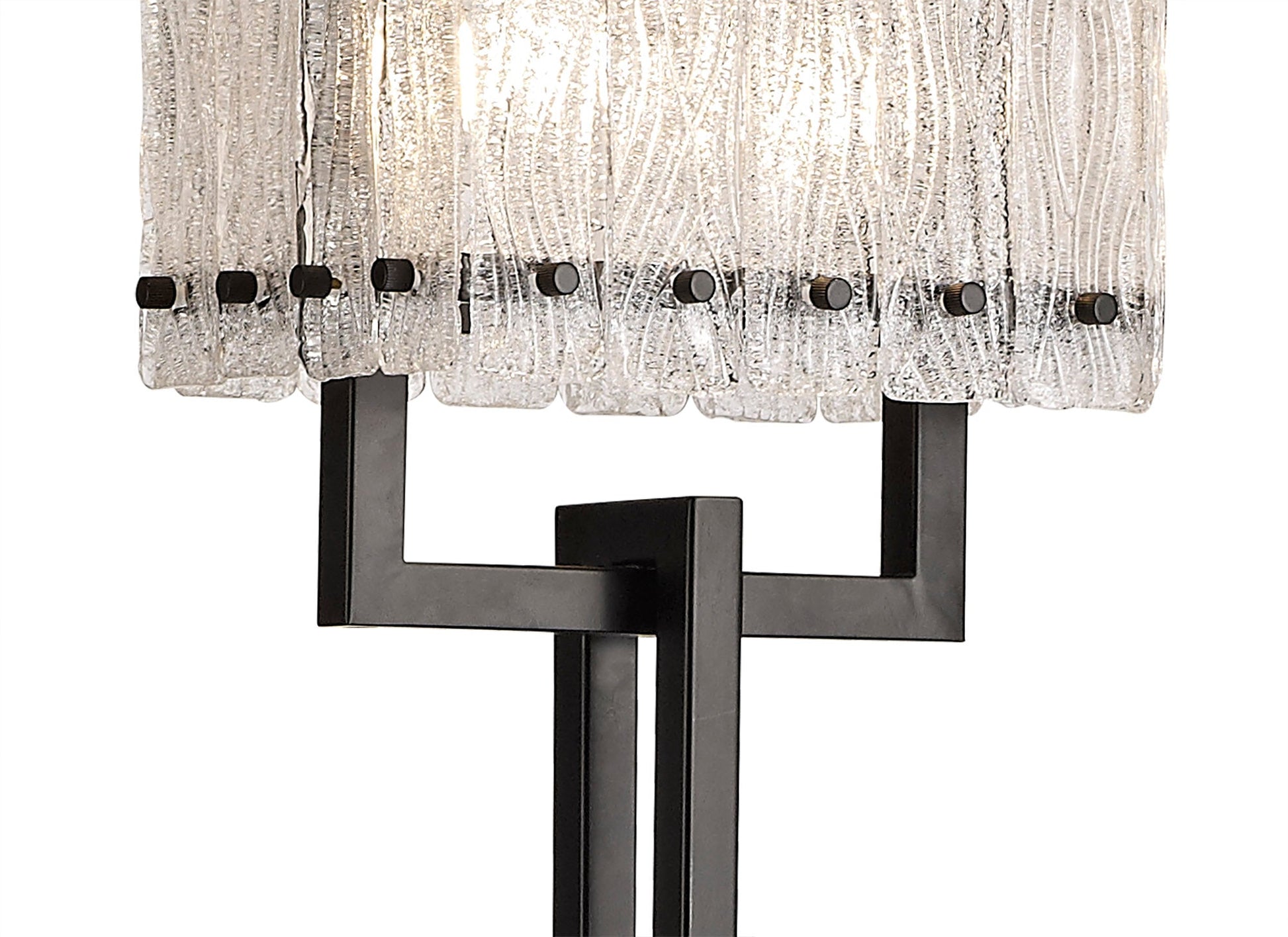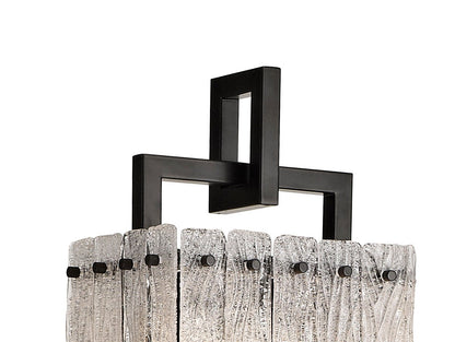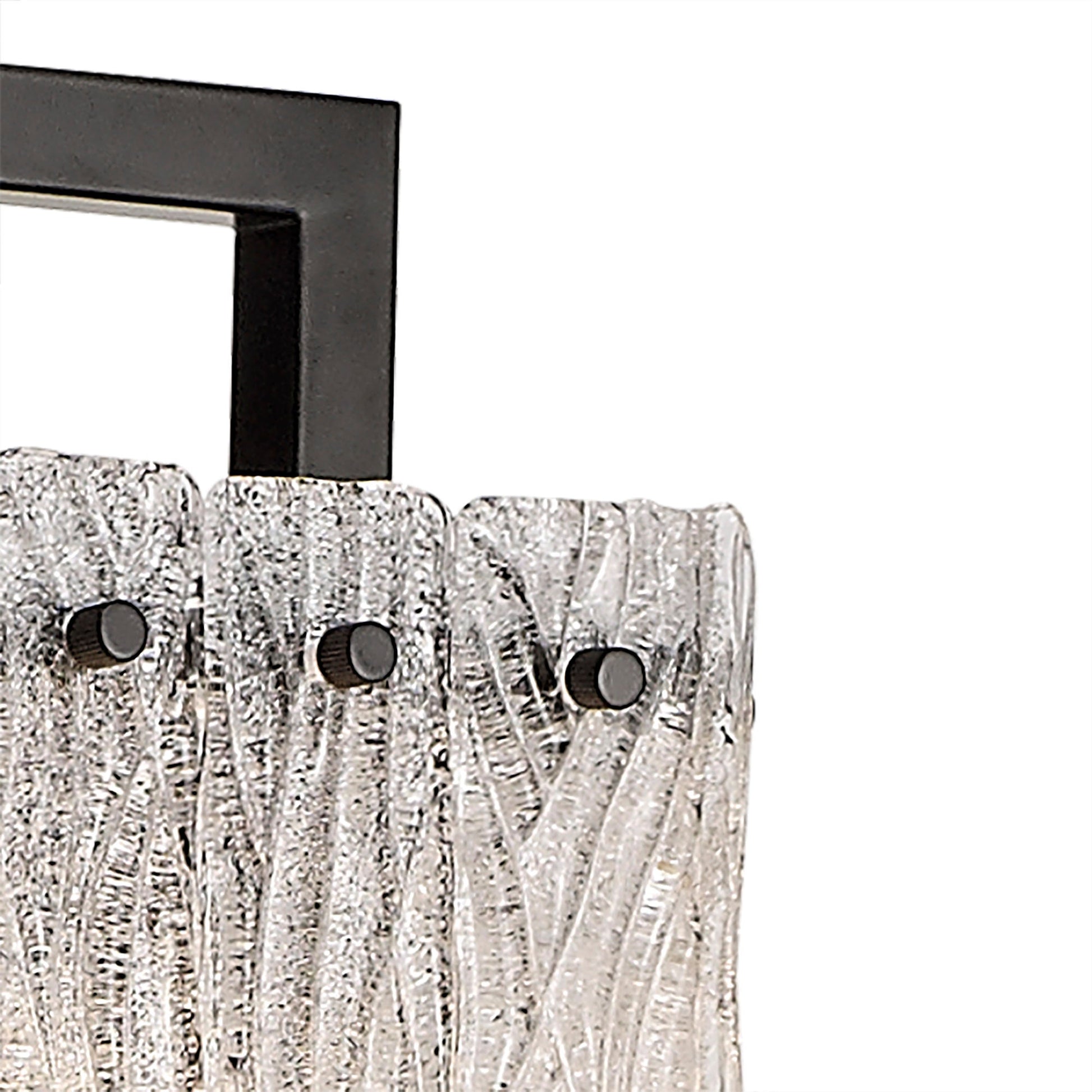Hiding the E27 lampholders are panels of hand made glass that have been crafted to look like shards of ice, each unique in their patterning and texture.