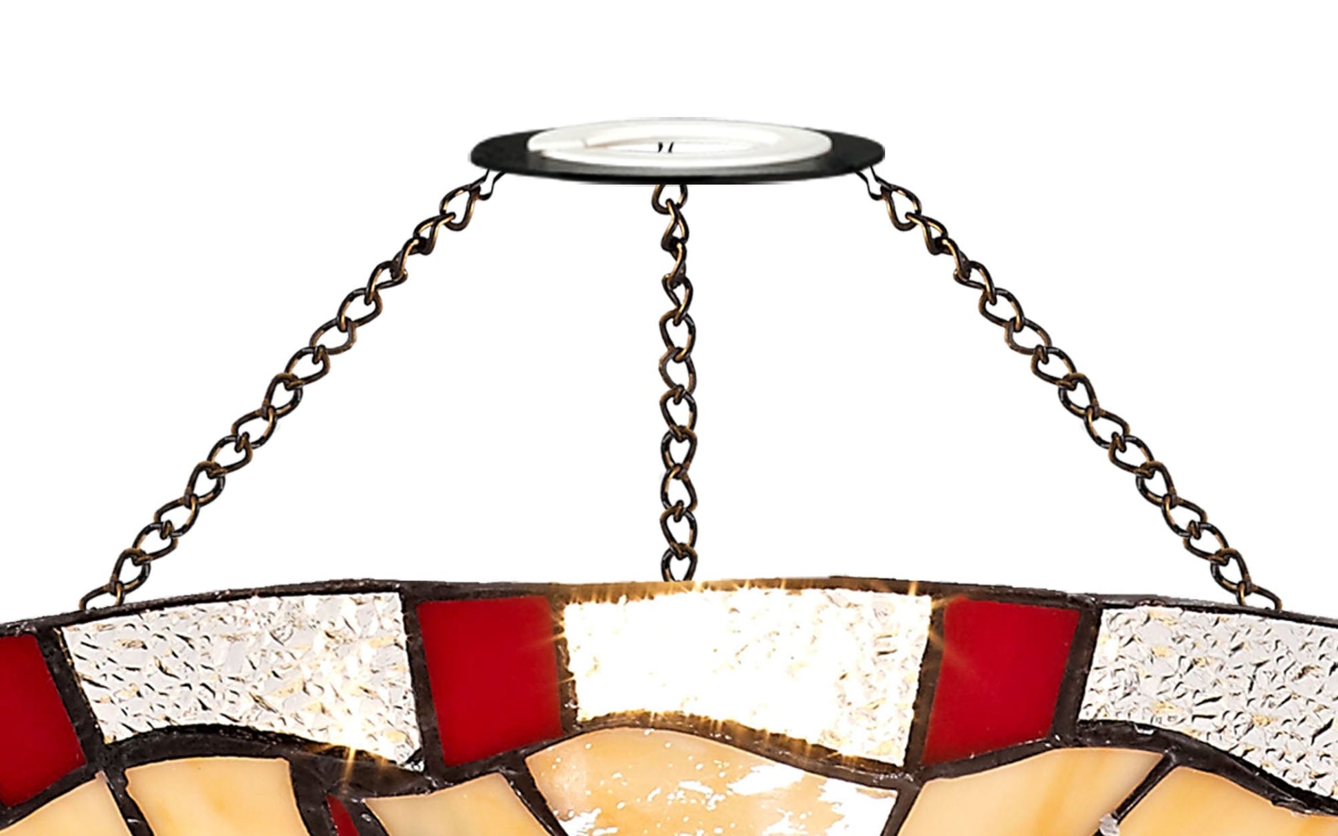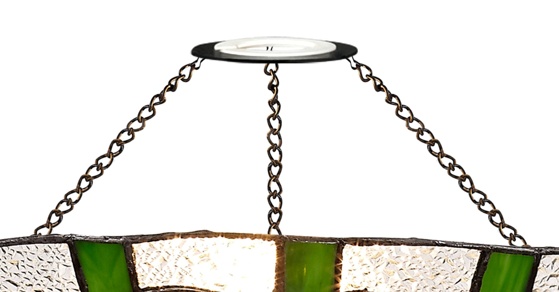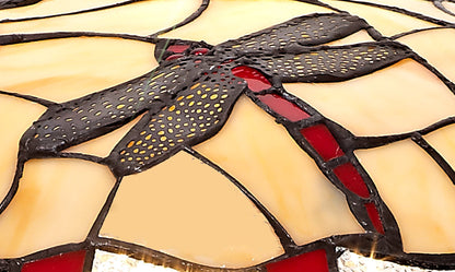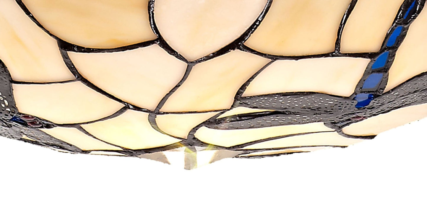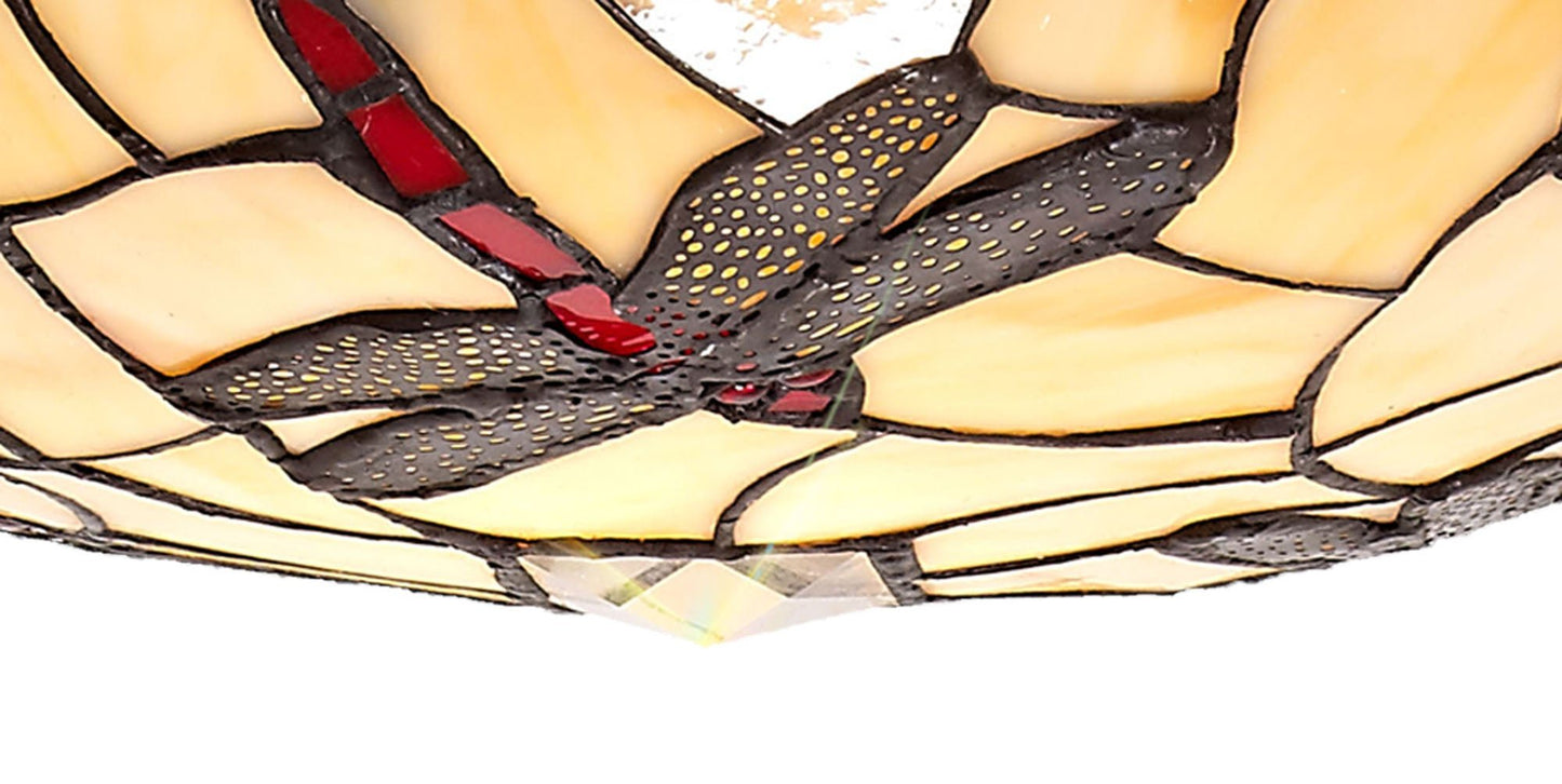 The Athens Tiffany shade is made of stunning cut glass depicting a beautiful dragonfly scene surrounded by bright coloured stained glass and crystal.