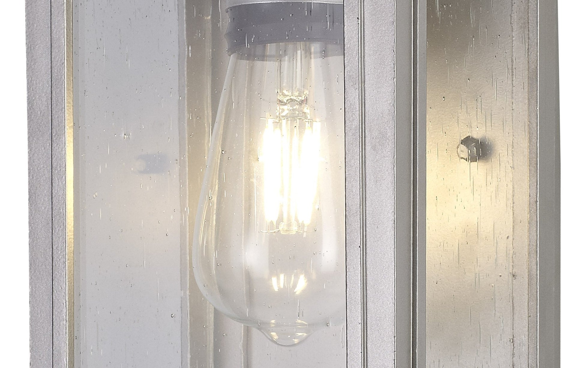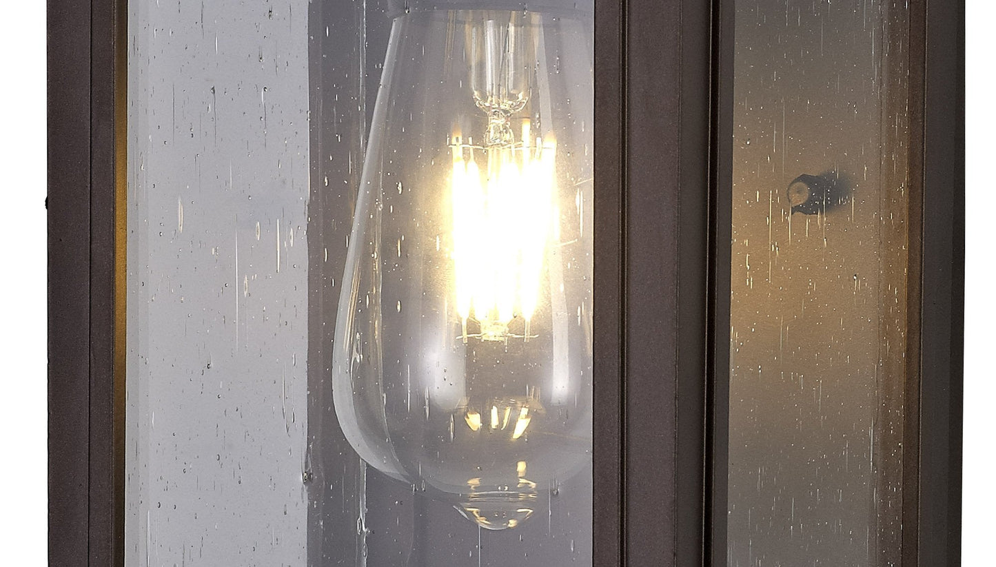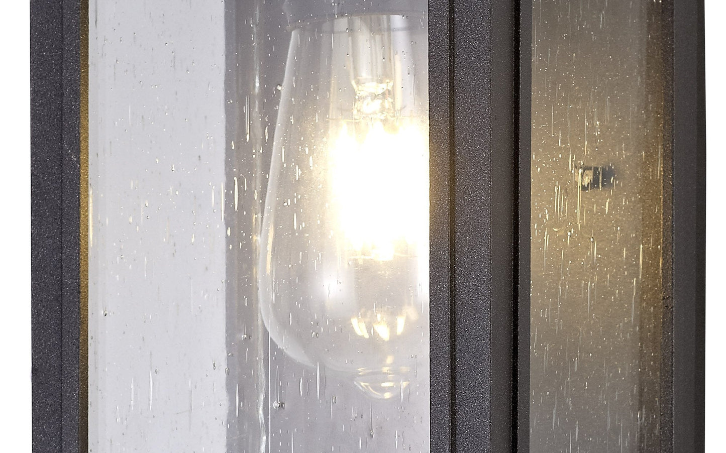 Its classic design makes this the perfect addition to a period home or gates. The classic desigh is enhanced by the seeded glass that mimics the effect of rain. The strong panes show a clear view of the bulb within, making a filament shape the perfect accompaniment.