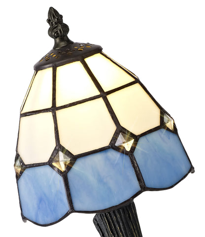 The Neptune table lamp is made of exquisit tiffany style glass in rich cream and a swirled sea blue.