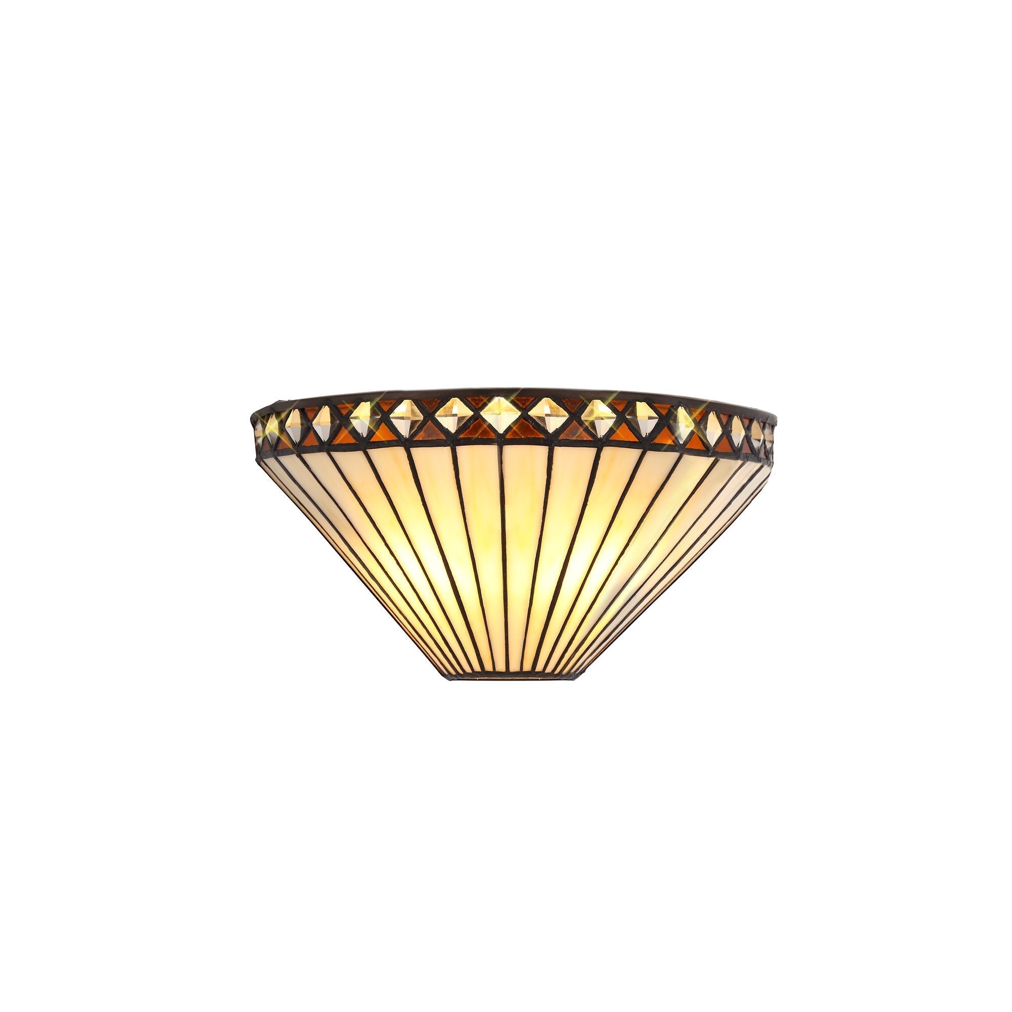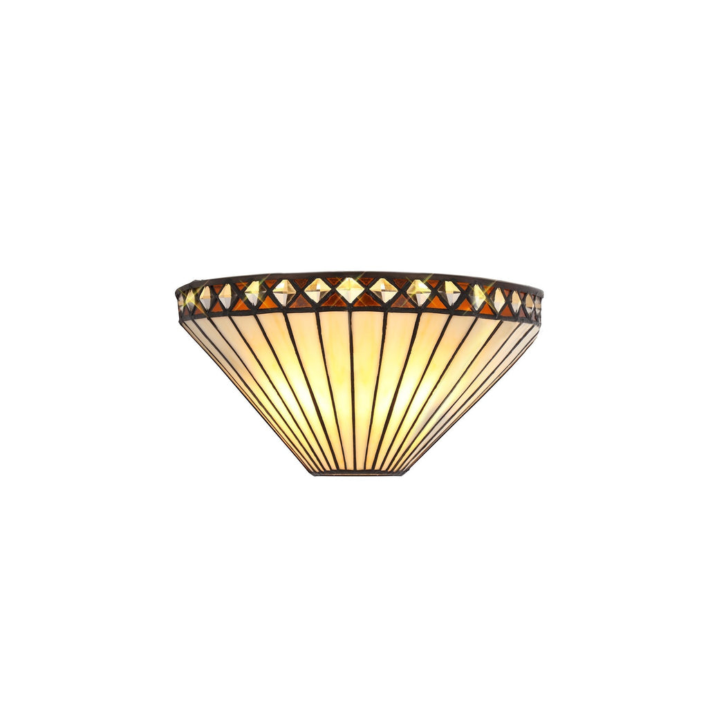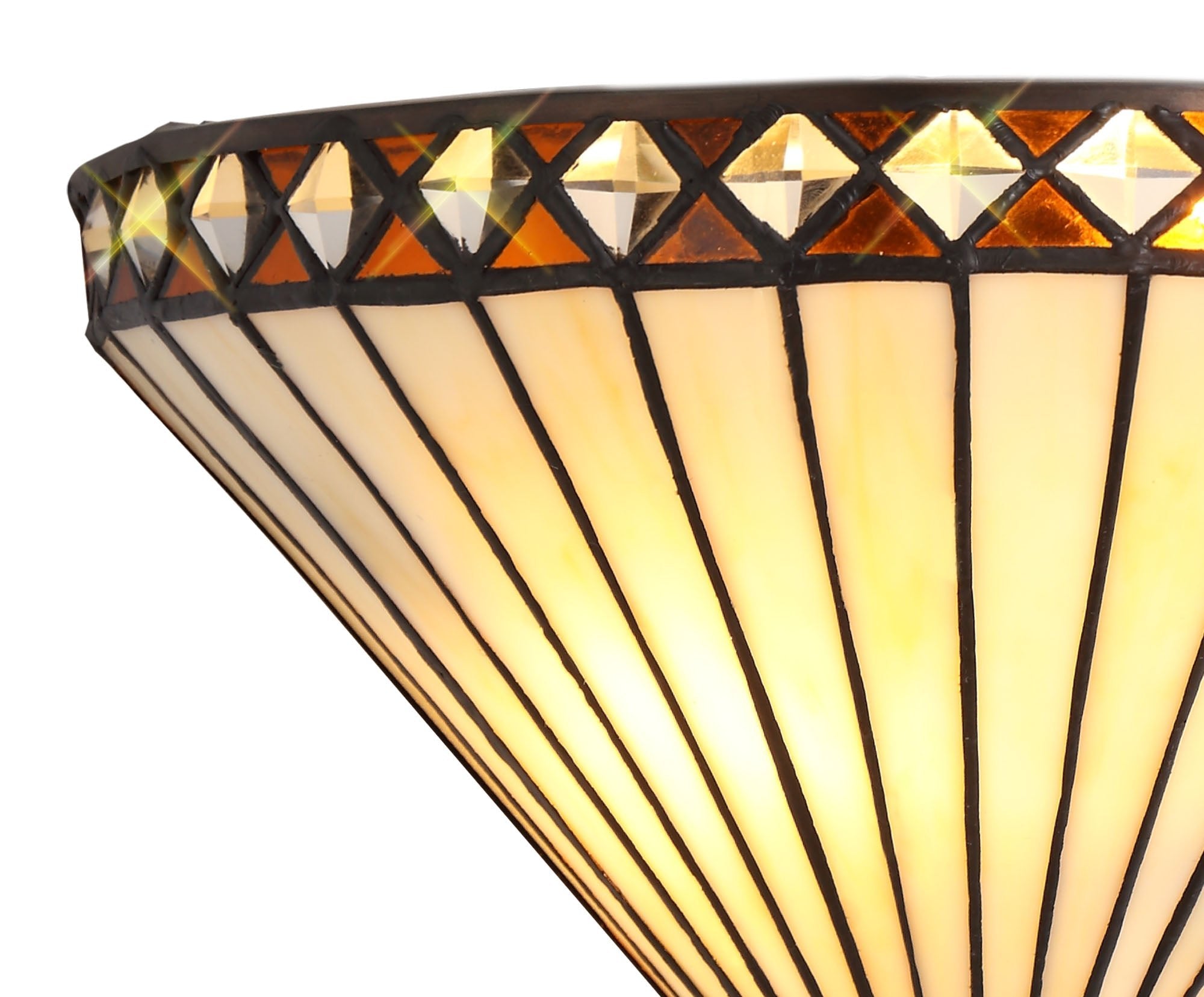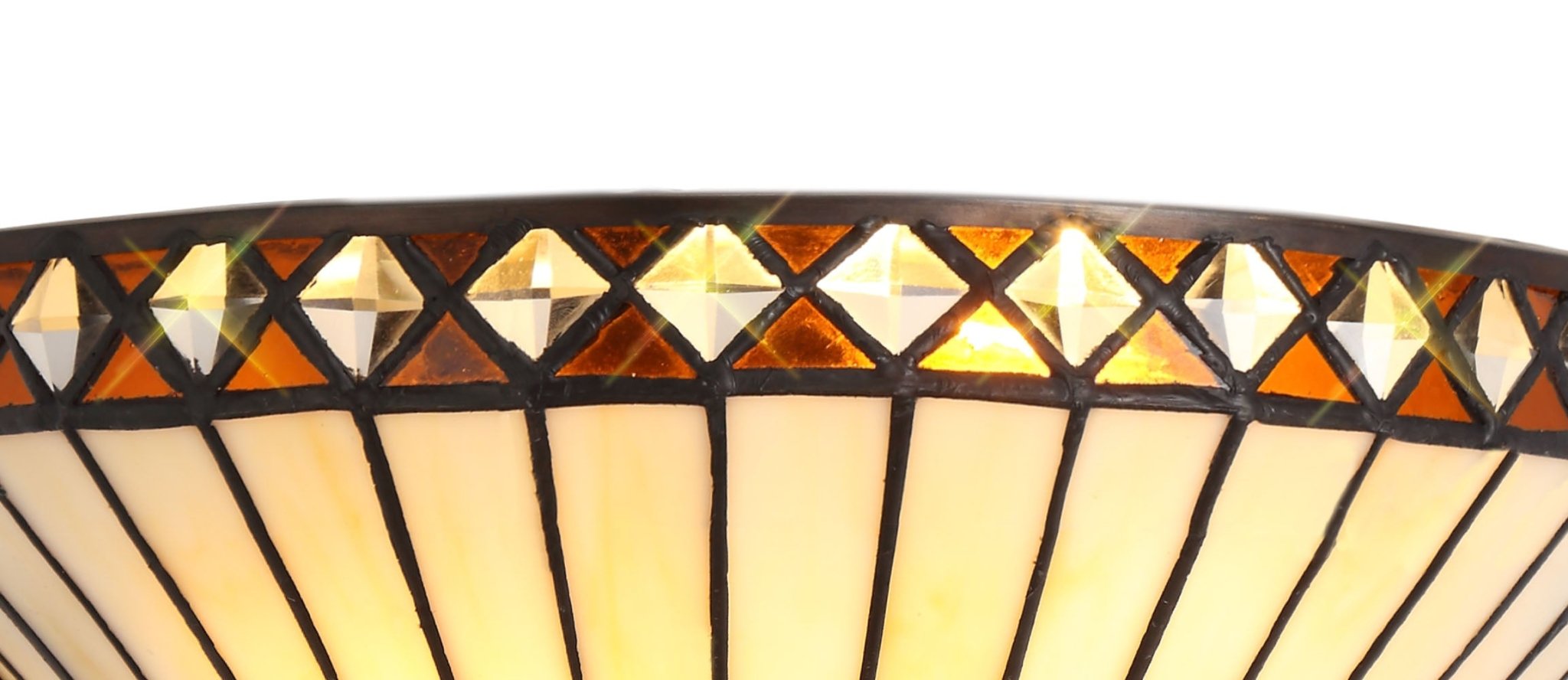 Its Heavy set glass is mainly a milky white colour giving the lamp a lovely soft glow whilst its rim is trimmed in a deep amber coloured glass inset with K9 swarovski quality lead crystals