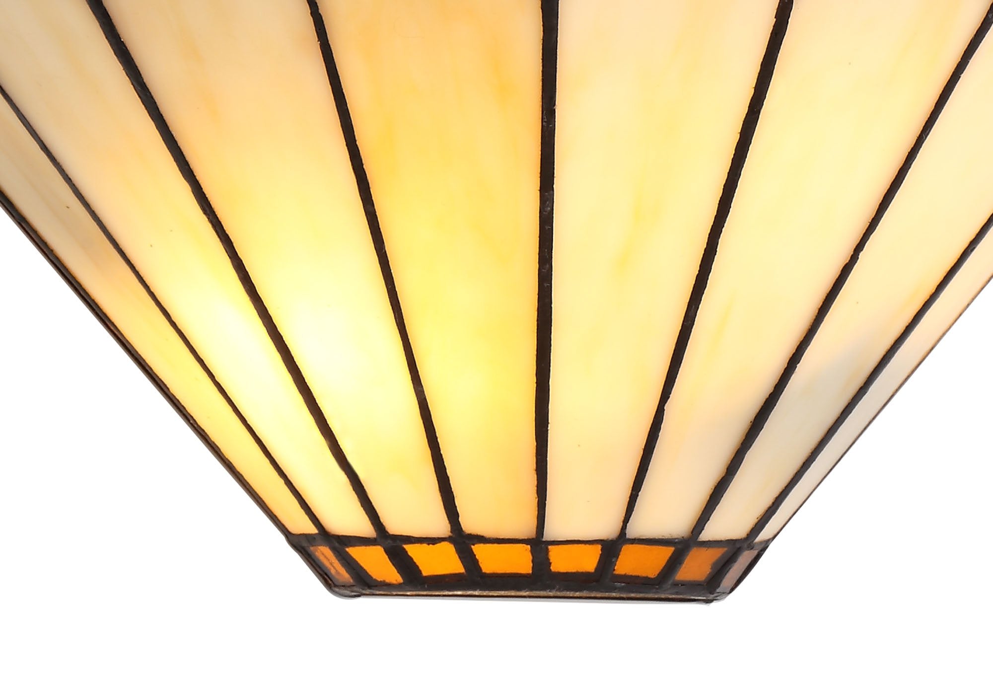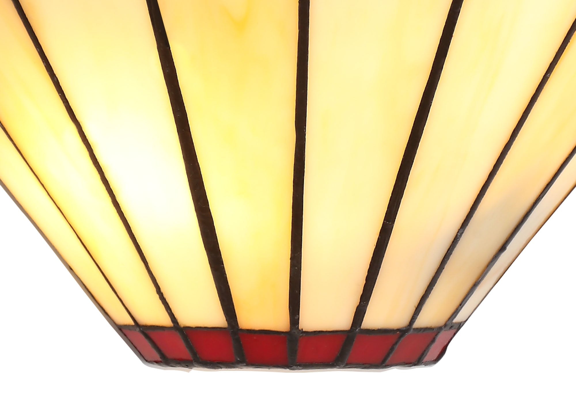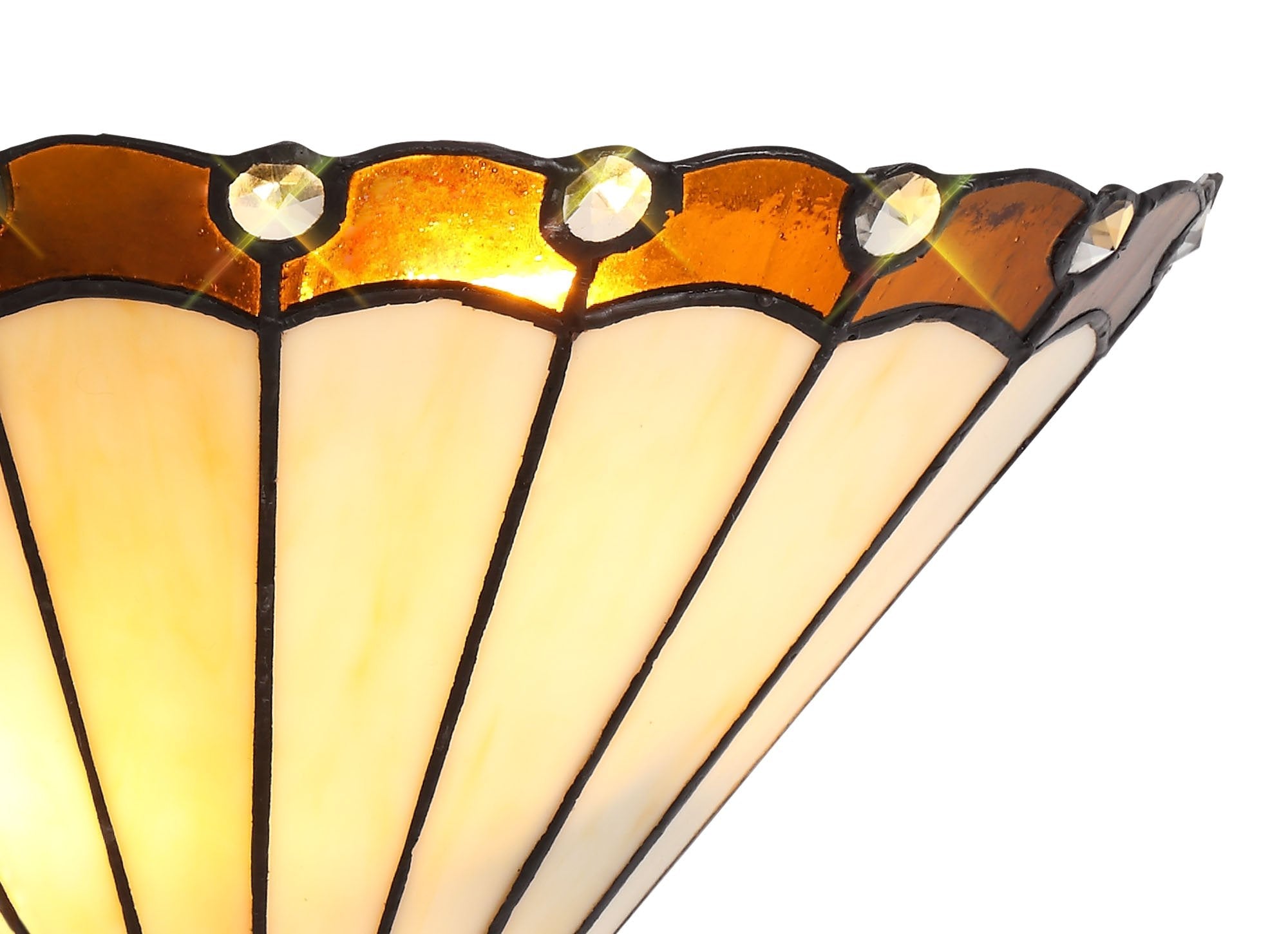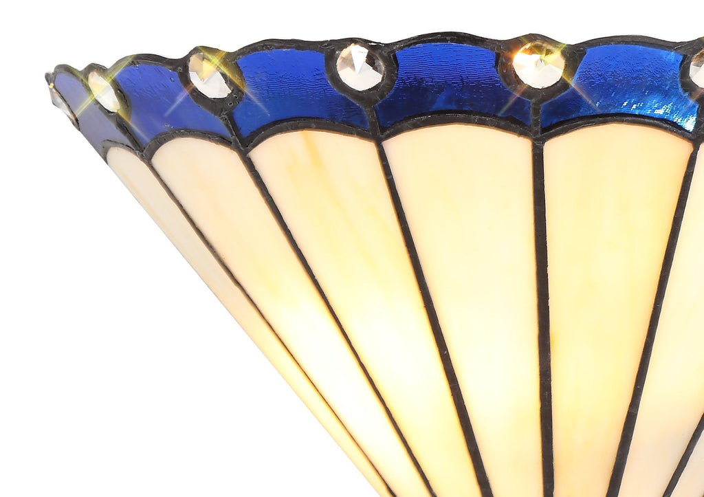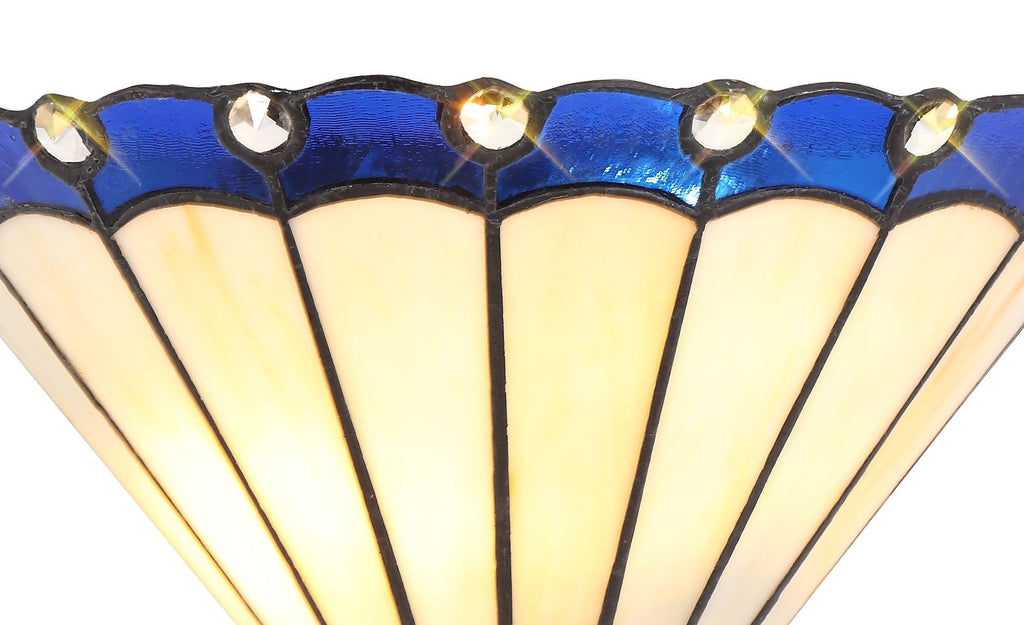 The Chamber tiffany range is the traditional style of vintage glass in the long feathered panels except it has been updated with a splash of bright coloured glass and crystal at the tips.