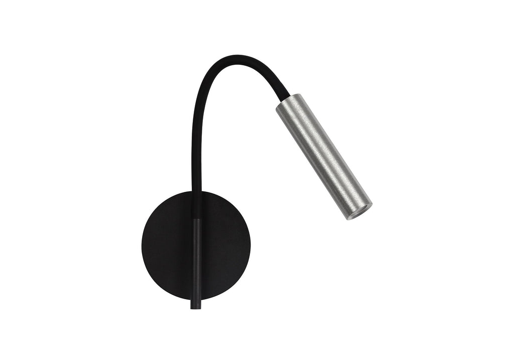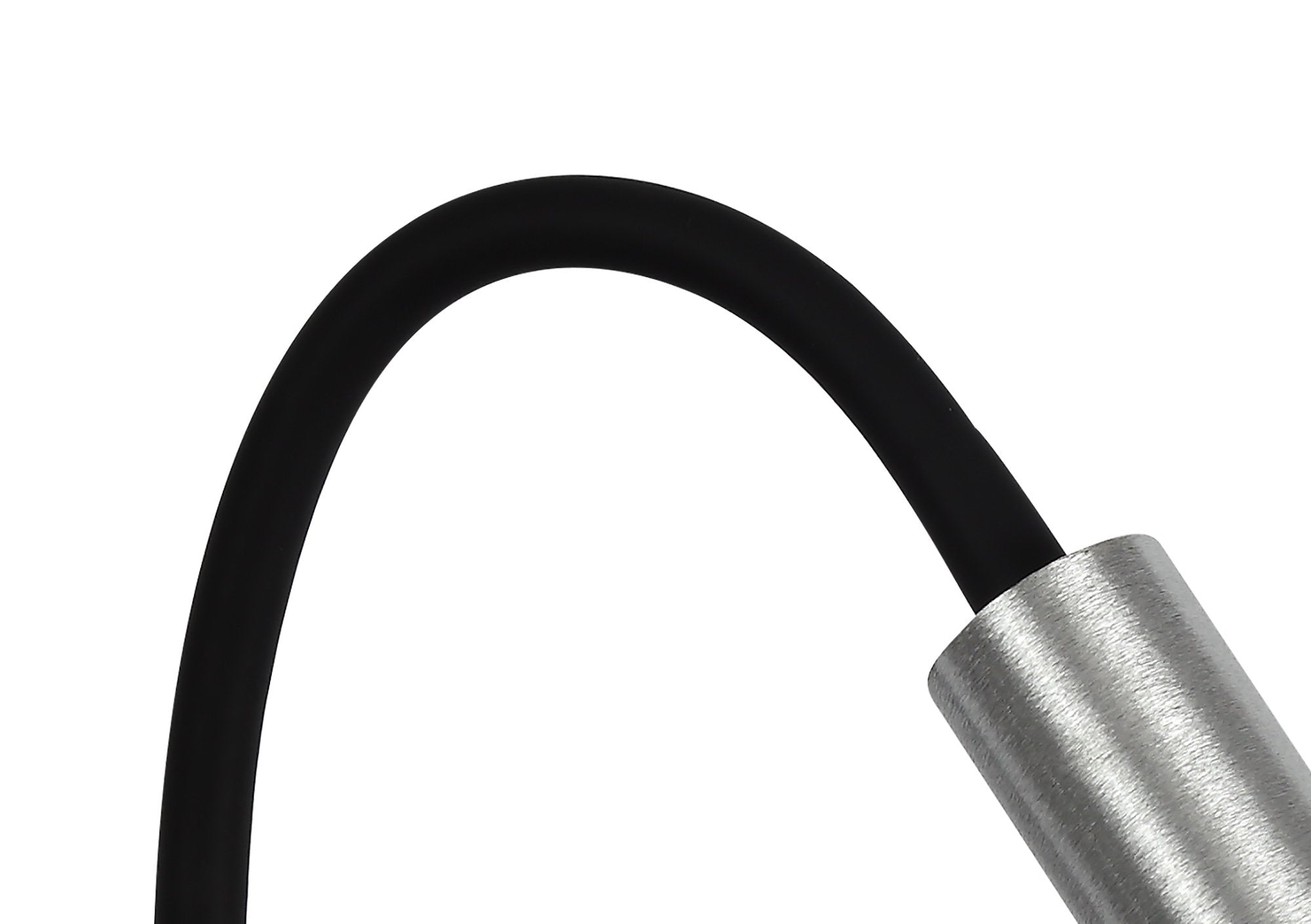 Its flexible arms are bendable and twistable and each carries a cylindrical led light mounted in a brushed metal tube.