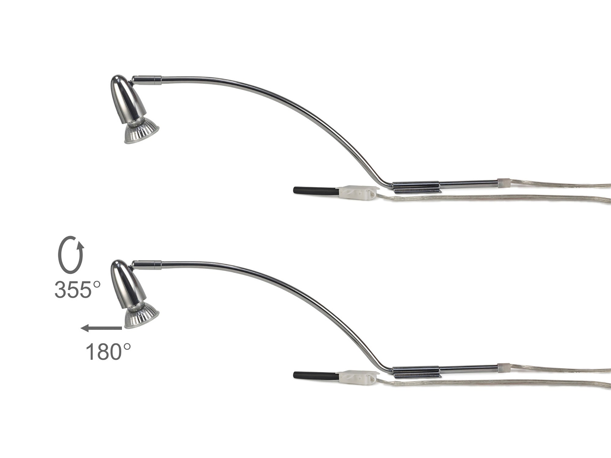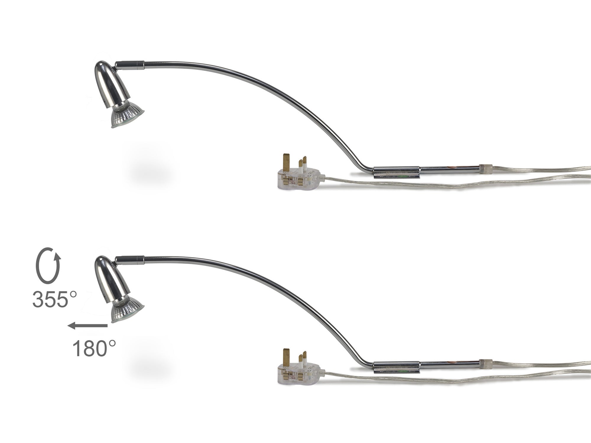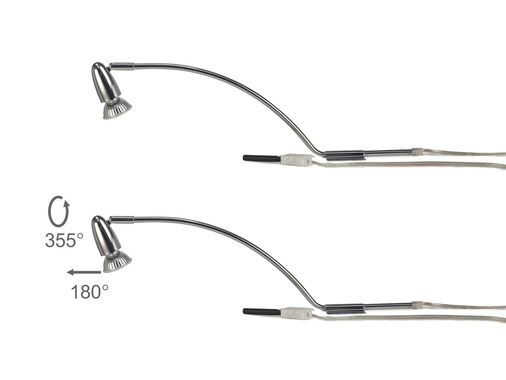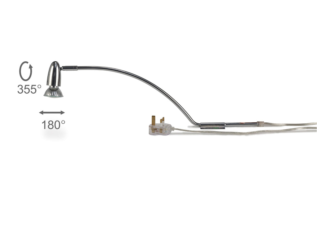 Ideal for kitchens, display lighting and exhibitions. Available in Satin Nickel or Polished Chrome finish