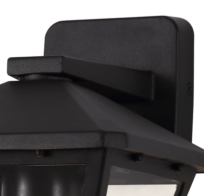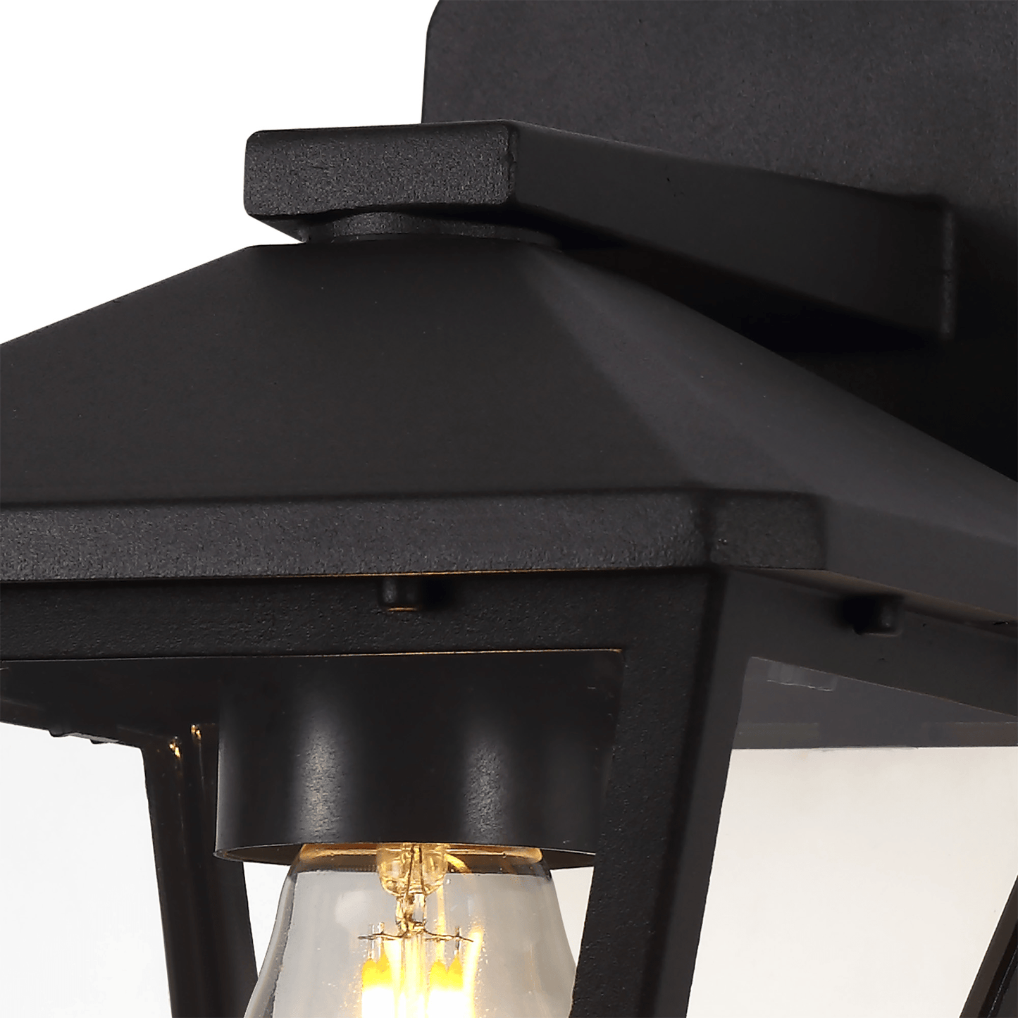 Luqi Downward Wall Lamp, 1 x E27, IP44, Black/Clear Glass