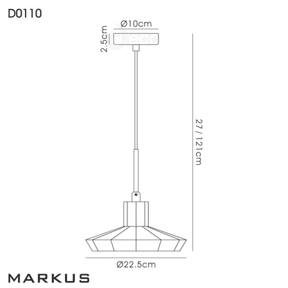 The Markus pendants are available in three designs; a slim cone shade and medium wider cone conceal the lamp and lampholder whilst a shallow shade option exposes the lamp used. These decorative lights are perfect for bringing character to any room setting.