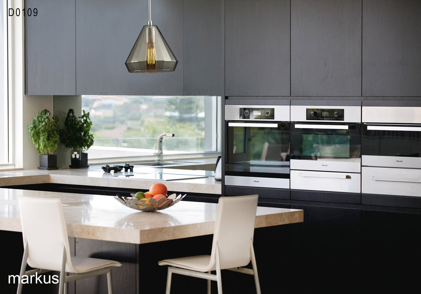 Markus is a range of retro single pendants which use glass to create a shade design that sits on an E27 lampholder.