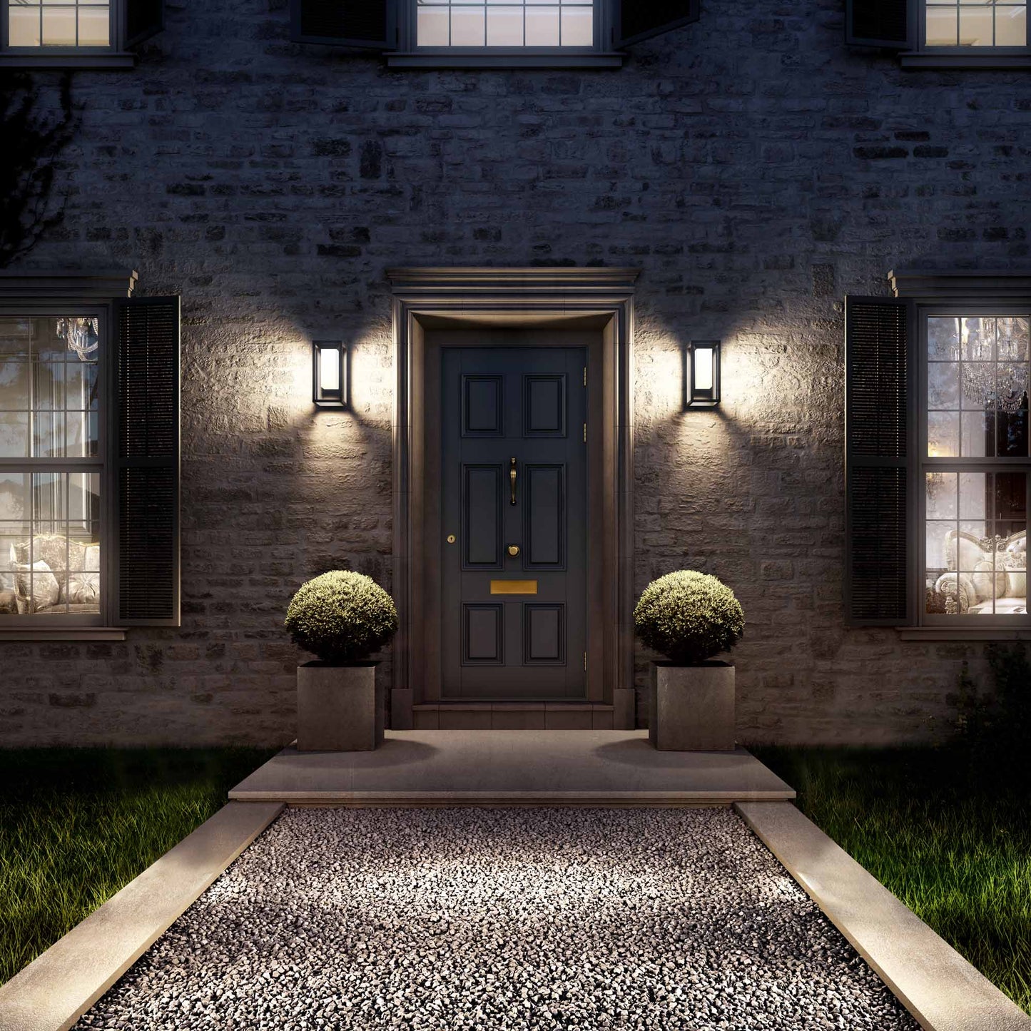 Meribel’s unique combination of frame and glass creates a collection of outdoor wall and pedestal lamps which gives the effect of the lamps being held in glass display cases.