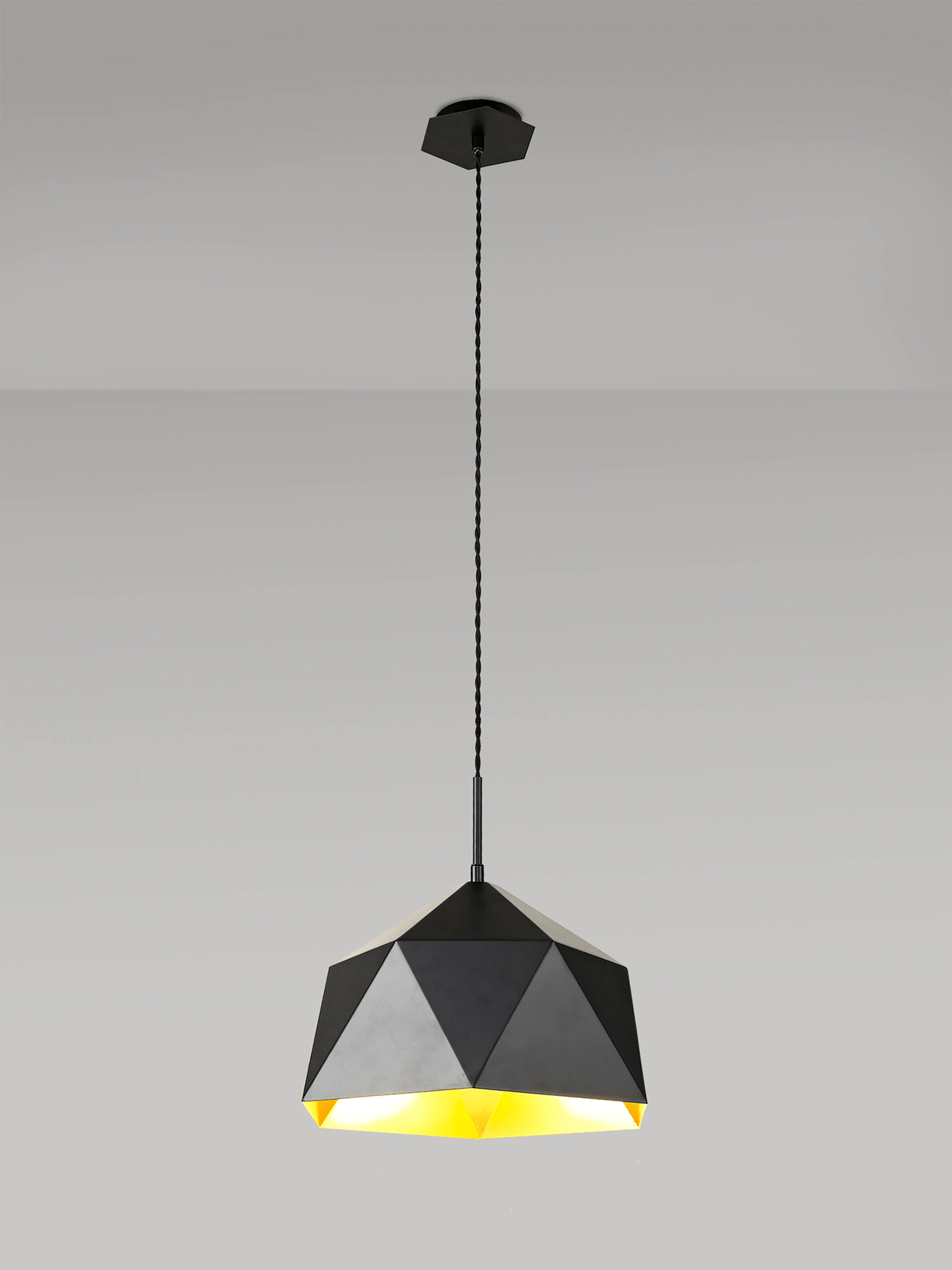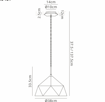 The shade has been carefully designed to reflect the maximum light into the room whist still retaining its designer aesthetic. The Ceiling rose continues on the geometric shapes making it an unusual and absolutely stunning fitting.
