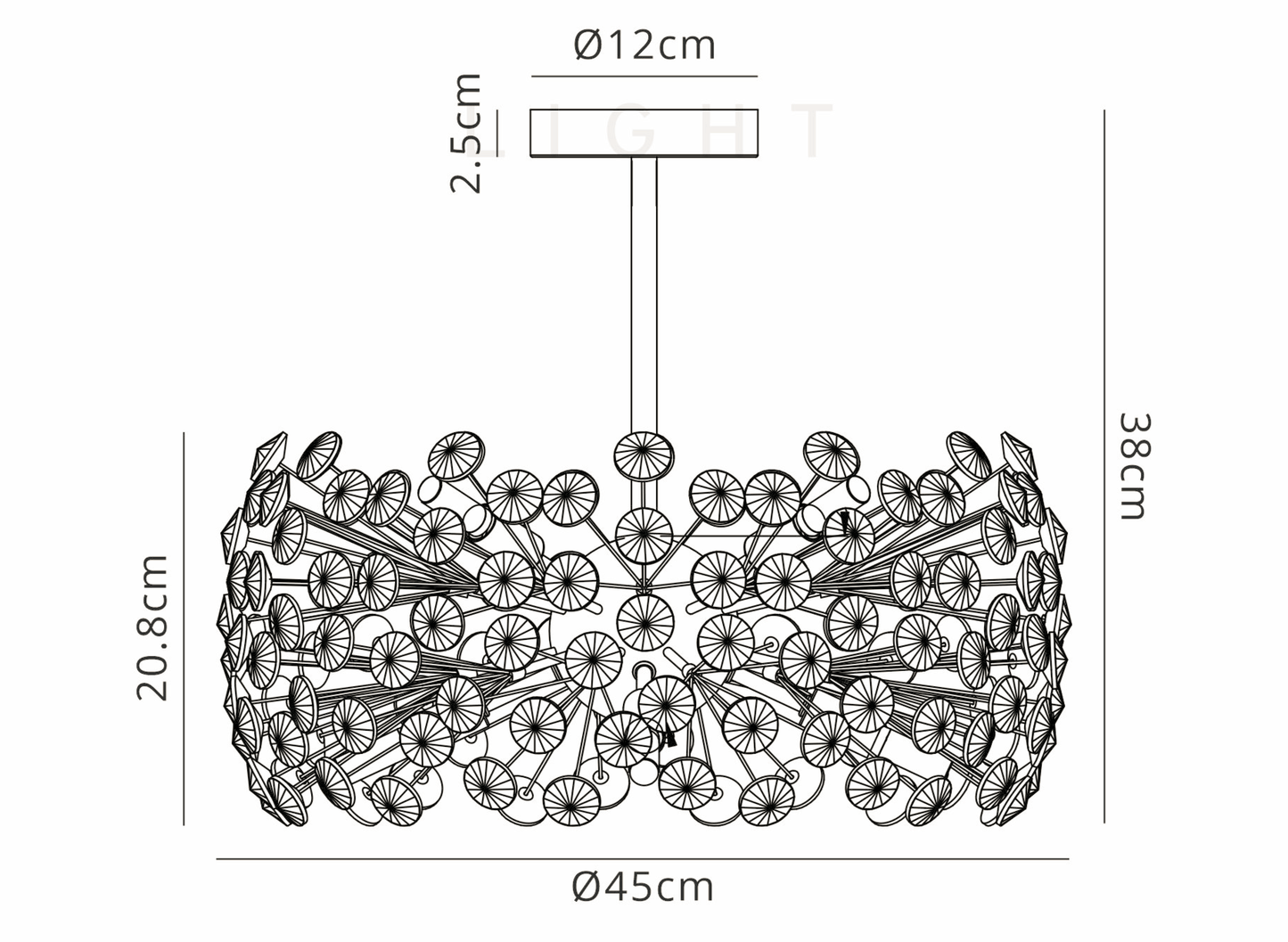 The fitting comprises of Swarovski quality lead K9 cystrals encompasing a central ring of lights giving a truly angelic glow.