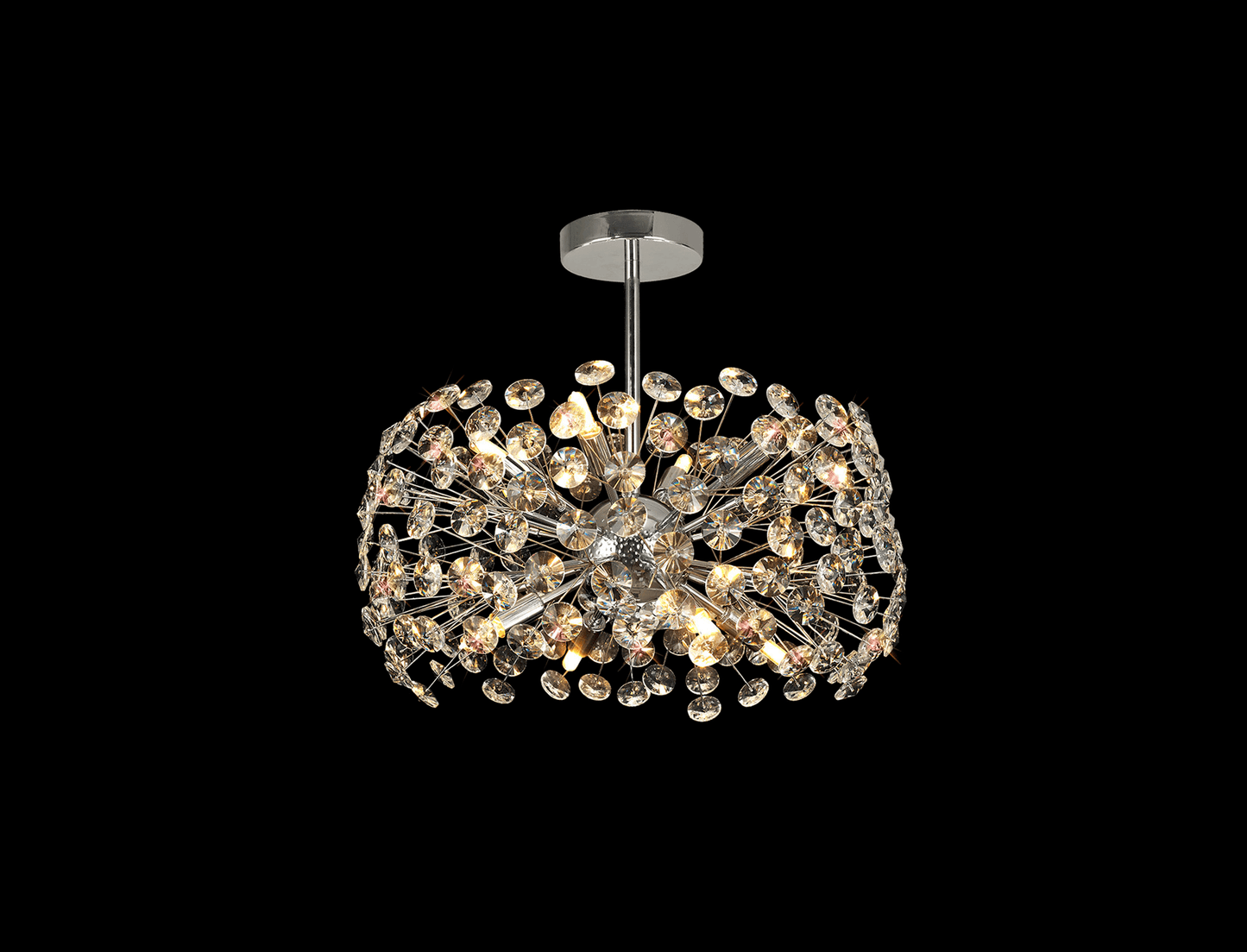 The Opulance Range is a modern take on the traditional crystal chandelier.This Semi Flush fitting gives the truly spectacular look of the pendants without the height restrictions
