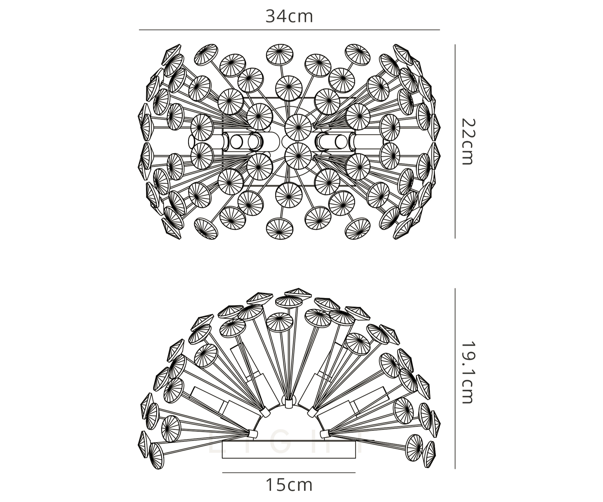 The fitting comprises of Swarovski quality lead K9 cystrals encompasing a central ring of lights giving a truly angelic glow.