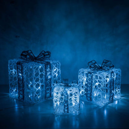 - White lights in the body of the gift with silver bows attachable by supplied plastic ties.