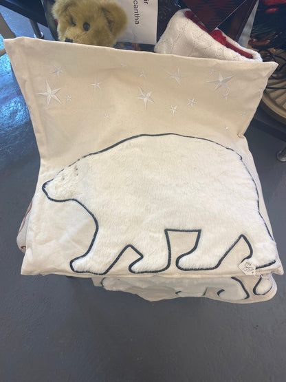 It has a gorgeous polar bear design that is appliquéd on the front made from super soft white fur, the bear is surrounded by embroidered stars.