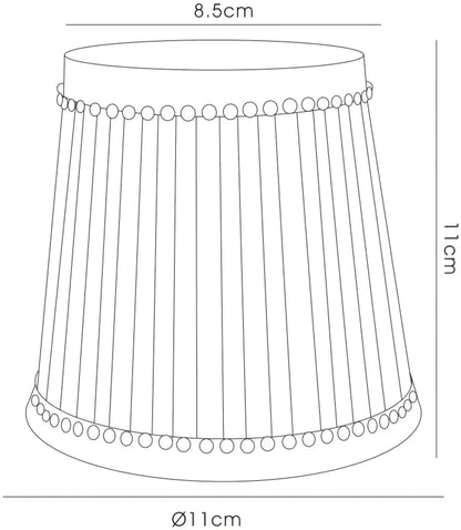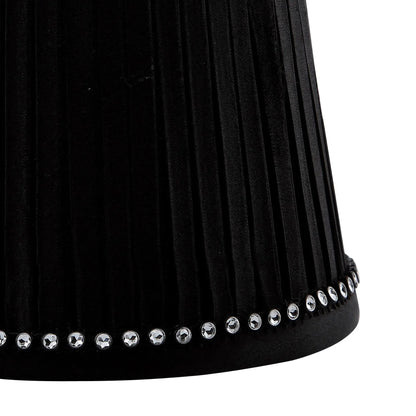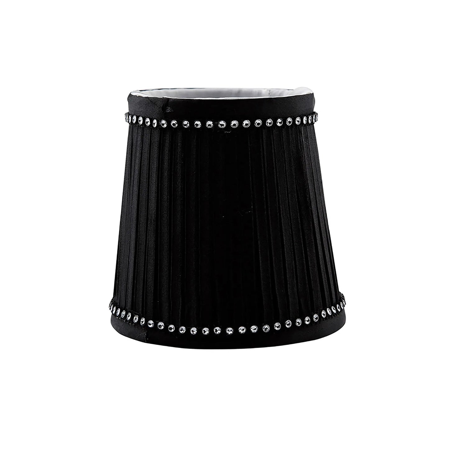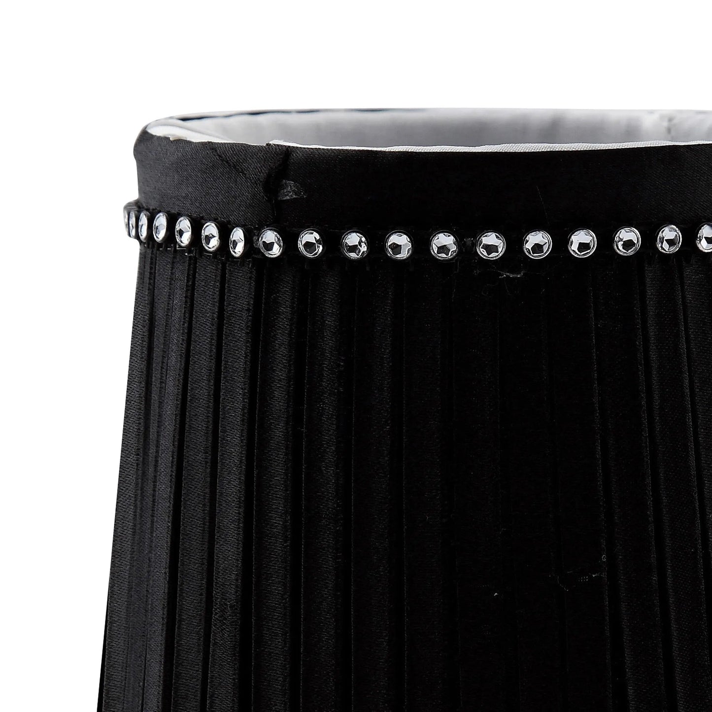 This is an elegant pleated shade which is fabric lined with a trimming of small crystal around the top and bottom outer edge. This shade adds that extra touch of glamour to many suitable products. The shade is available in black and white and simply clips on to a candle or golf ball lamp.