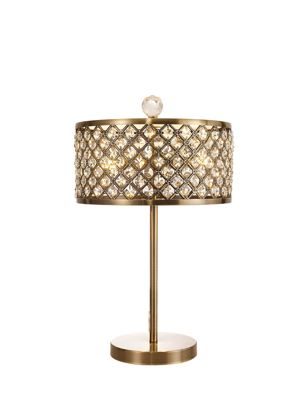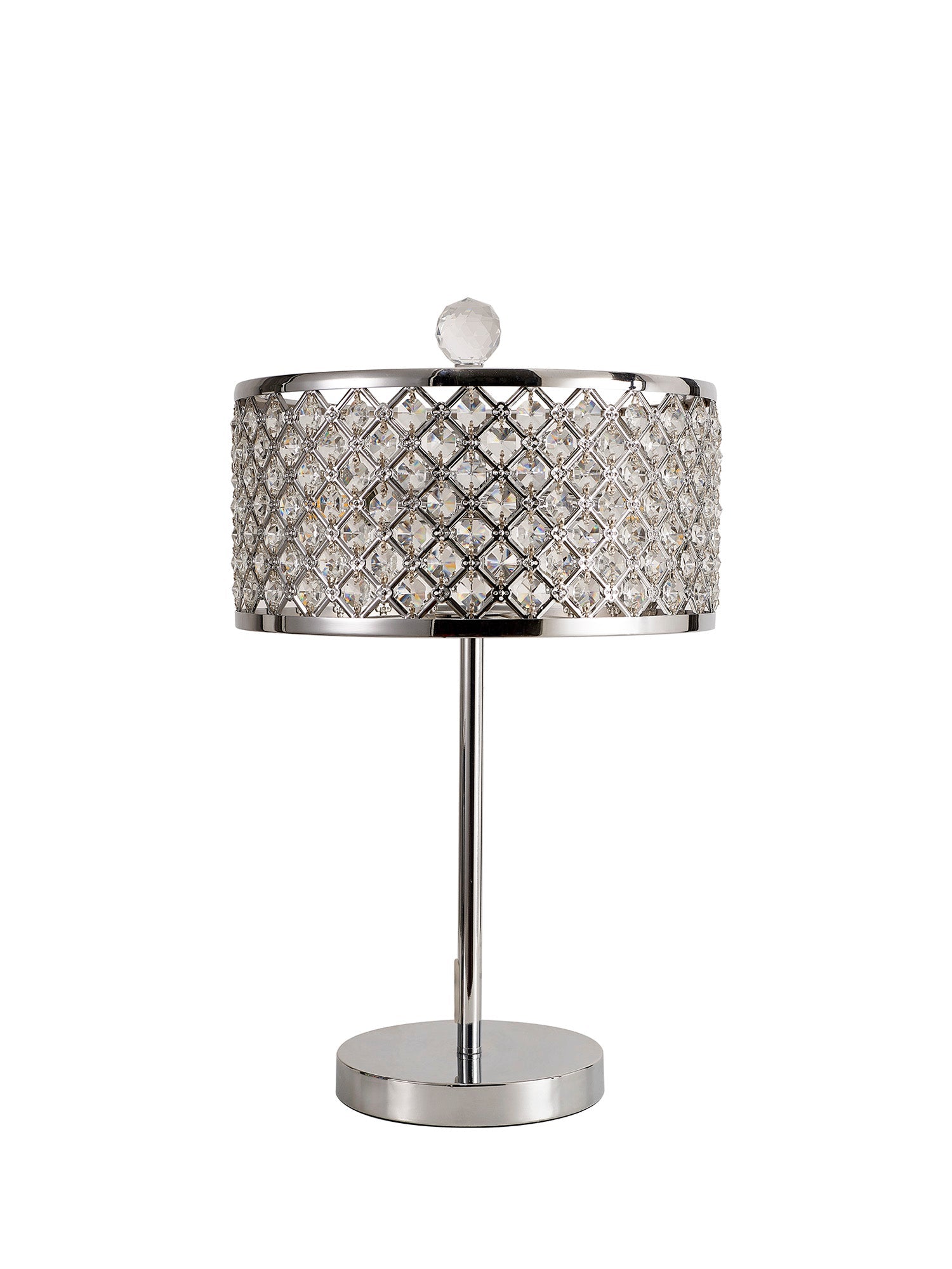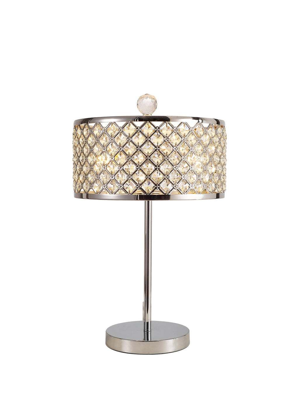 The lampholders of the ceiling and table lights are concealed by a sleek opal glass diffuser. The Sasha range is available in both a polished chrome and antique brass finish.
