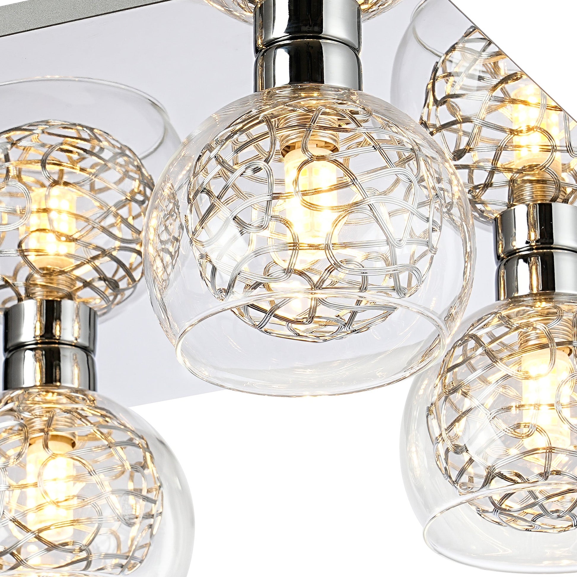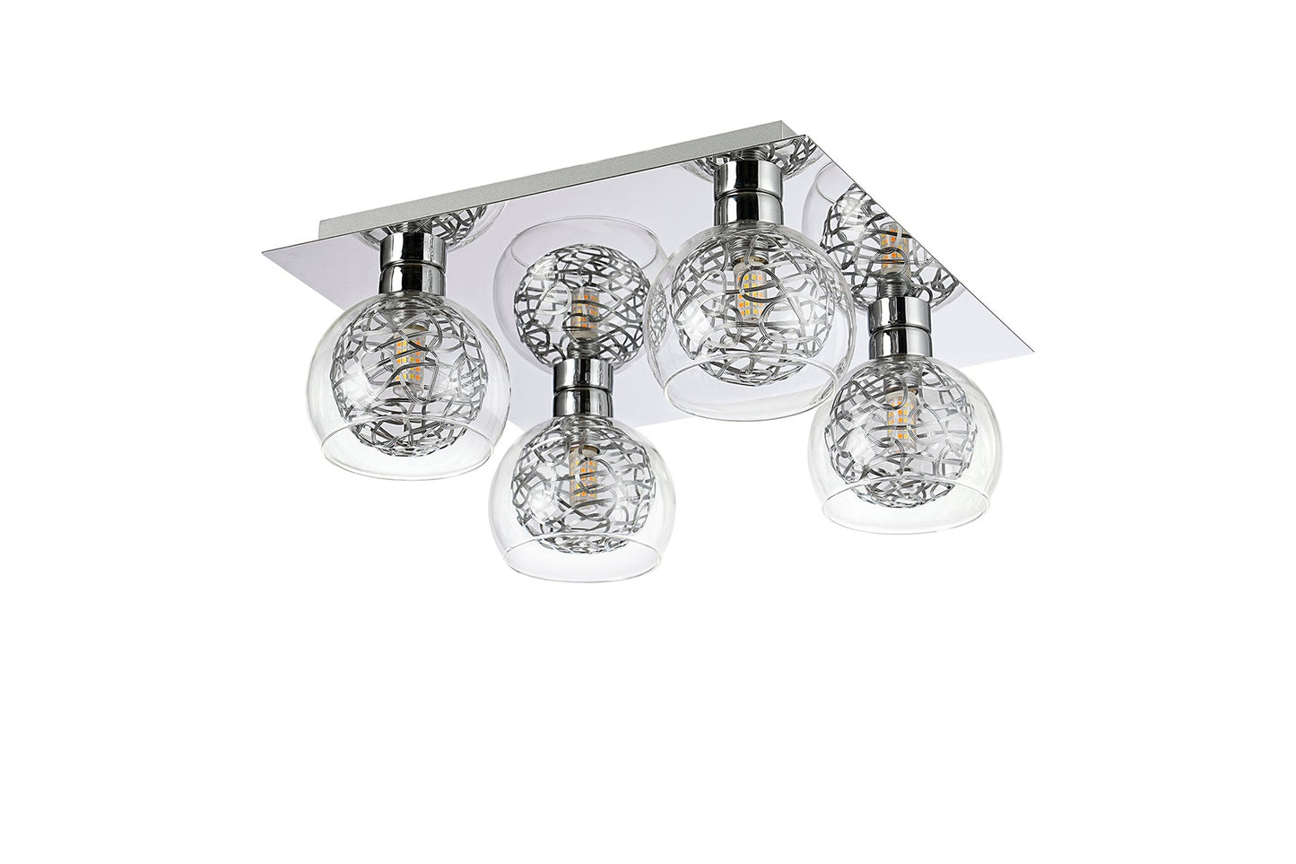 This round silver shade is formed of narrow ribbons of metal, entangled to create an artistic pattern and design. Together these components combine to form an intriguing shade to encircle the G9 lampholders.