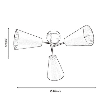 Taza 3 Light Black and Gold Semi-Flush Cone Light