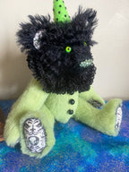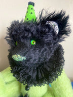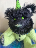 He is made from luxurious this black mohair and hand dyed apple green sheepswool fabric